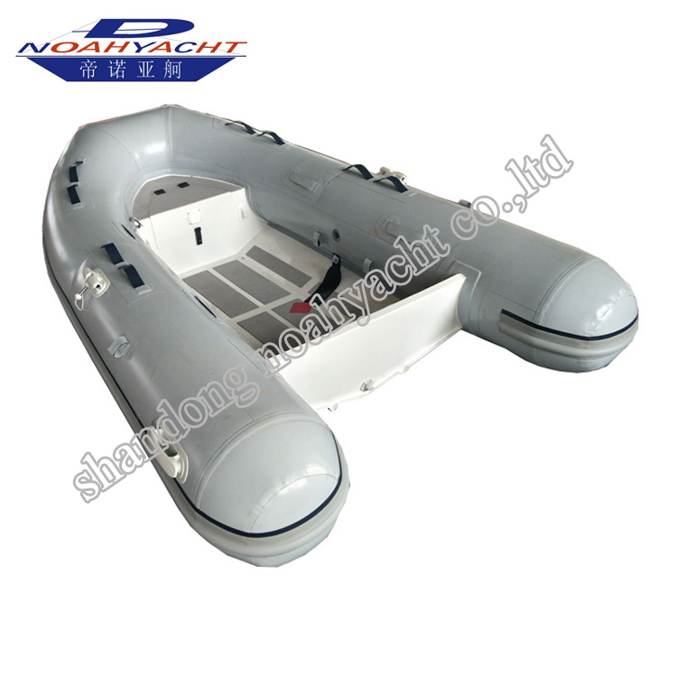 Product name: 3 Meter Hypalon Aluminum Rib Dinghy Boat Aluminum v hull with front locker rigid inflatable rib fishing dinghy boats are the most popular models made by shandong noahyacht co.ltd . This series aluminum dinghy boat has front locker as storage and seat ,it is very convenient work as water sports boat, it has features of light weight and durable , especially hypalon rib dinghy has long life time compare to pvc dinghy boat.The small aluminum rib dinghy easy to pack and store for personal use . Aluminium inflatable dinghy rib boat has anti slip EVA glued on deck . Aluminium transom design for short shaft or long shaft , equip with outboard motor . The aluminium rib boat with front locker model can be raw aluminium hull, white powder coated aluminium hull , dark gray powder coated aluminium hull , black powder coated aluminium hull for option. Tube material has 0.9mm pvc, 1.2mm pvc, orca hypalon , Achilles hypalon for option . Boat tube color can be custo…