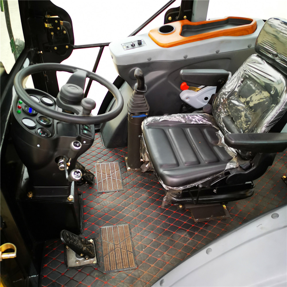YN886 Front End Excavator Backhoe Loader Description: 1. Hydraulic steering system, easy to control 2. Hydraulic walking, with Chinese best torque converter, contiuously variable transmission;Service brake is air over hudraulic discc brake on 4 wheels, with blast pump 3. It have all the functions of 180°wheel excavator and the same wheel loader. 4. Excellent operating performance with high working efficiency 5. All kinds of attachments are optional, such as snow blade, road sweeper, hydraulic hammer, grapple, pallet fork, to meet different customer's requirement. 6.Luxury enlarged cabin, safe glass, spacious and bright, seat can be used for sleeping, Cabin with hydraulic forward tilting function, easy maintenance. 7. The top canopy of the cabin can be removed for container delivery. 8. Streamline enlarged fuel tank with tilting oil port, easy to refill 9. Hydraulic componentes use famous brand , with long working life and stable performance; oversize…
