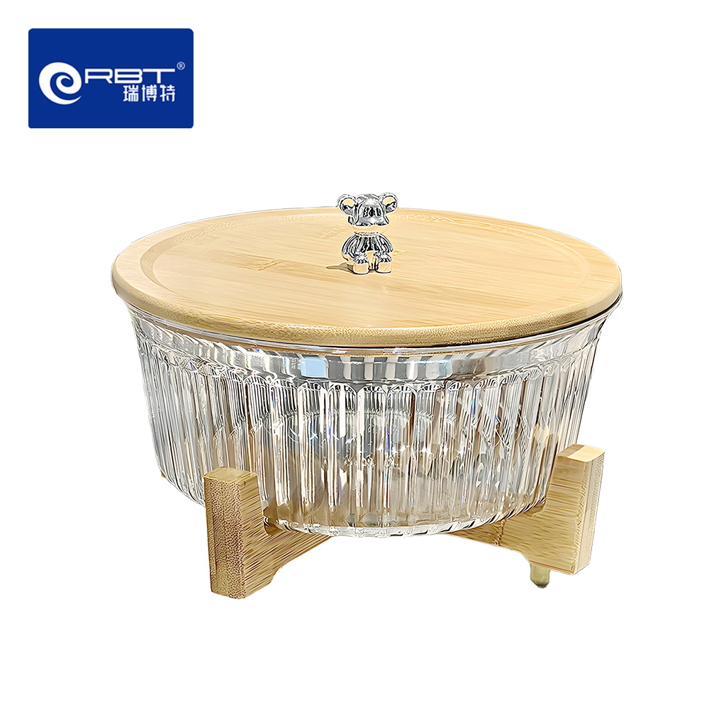 Product Introduction This bear - handled fruit and vegetable tray is a perfect blend of functionality and aesthetic appeal, making it an excellent addition to any home setting. Advantages Firstly, it boasts excellent preservation capabilities. The combination of a glass fruit plate and a wooden lid helps to keep fruits and vegetables fresh for a longer time by reducing air exposure while still allowing for proper ventilation. Secondly, it is highly decorative. The clear glass with a ribbed texture, the natural wooden elements, and the cute bear handle on the lid add a touch of elegance and charm to your table or countertop, enhancing the overall decor of your space. Additionally, it is very practical. The separate components—wooden stand, lid, and glass plate—are easy to clean and maintain, ensuring hygiene when storing food items. Detailed Features The tray consists of three main parts: a wooden stand, a wooden lid with a bear - shaped handle, and a clear glass fruit plate. The glass…
