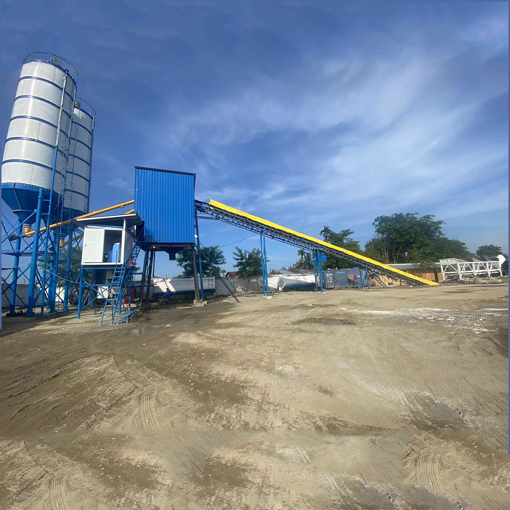 Belt Type Concrete Batching Plant 120CBM/H XINFENG Belt Type Concrete Batching Plant 120CBM/H consists of double-horizontal-shaft forced mixer, batcher, cement silo and screw conveyor, rubber belt conveyor as well as microcomputer control room. JS2000 double-shaft forced mixer, a forced and efficient equipment, which is adopted is applicable for the production of plastic concrete, dry hard concrete, etc, with high productivity, short stirring time and nice appearance, applying to large and medium sized construction, road, bridge and precast product factory of concrete product, and it is the best choice for commer…