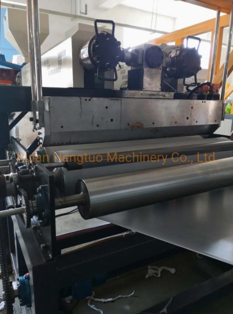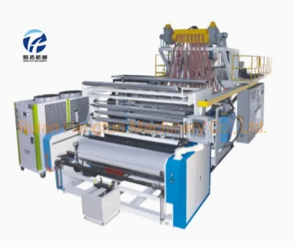 Product Description HT-1000 Double Extruder Book Membrane CPE Disposable Glove CPE Cast Embossed Film Making Machine Double extruder casting film making machine, double layer cling film making machine, Double screw stretch wrapping film machine Use This machine uses LDPE and LLDPE to produce casting stretch film(could produce one-side sticky film and the other side normal), adopting double screws and two hoppers. This co-extrusion stretch film is widely used in packing area for architecture, auto parts, hardware parts,etc. Characteristics 1. Screw and cylinder are all made of 38 CrMoALA after nitrogen treatment, which has an advantage of corrosion resistance and endurance, etc. 2. The cooling device adopts cycle water cooling which provide the best transparent effect of the stretch film 3. Rewinder adopts with friction-rewinding-type, with cutter device for edge correcting. Applications Packaging Industry: Used for stre…