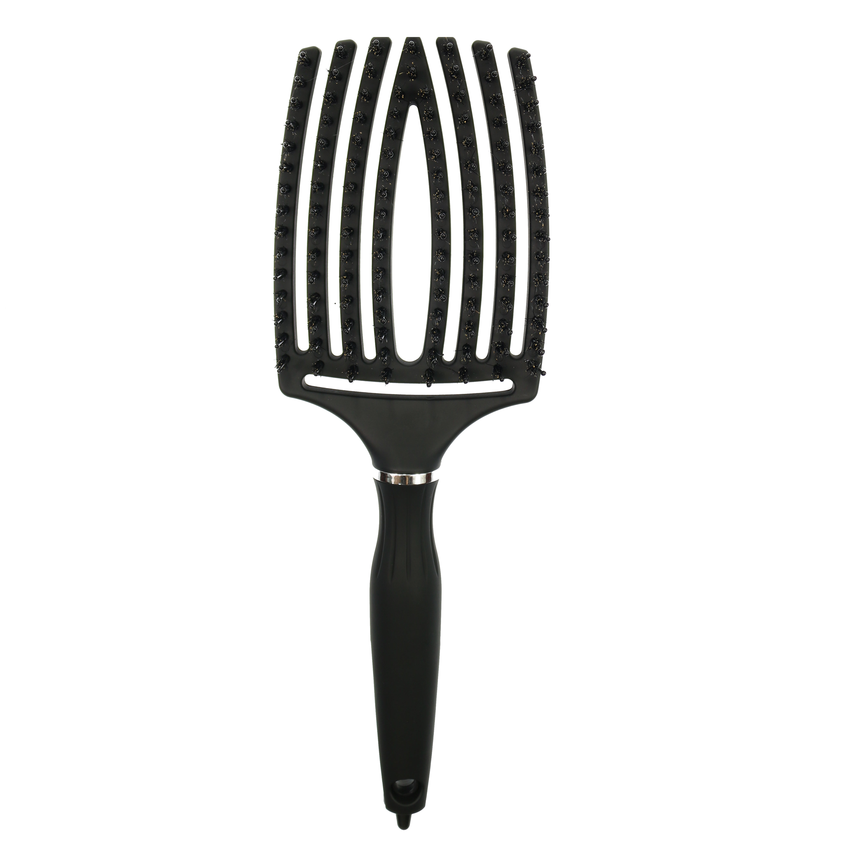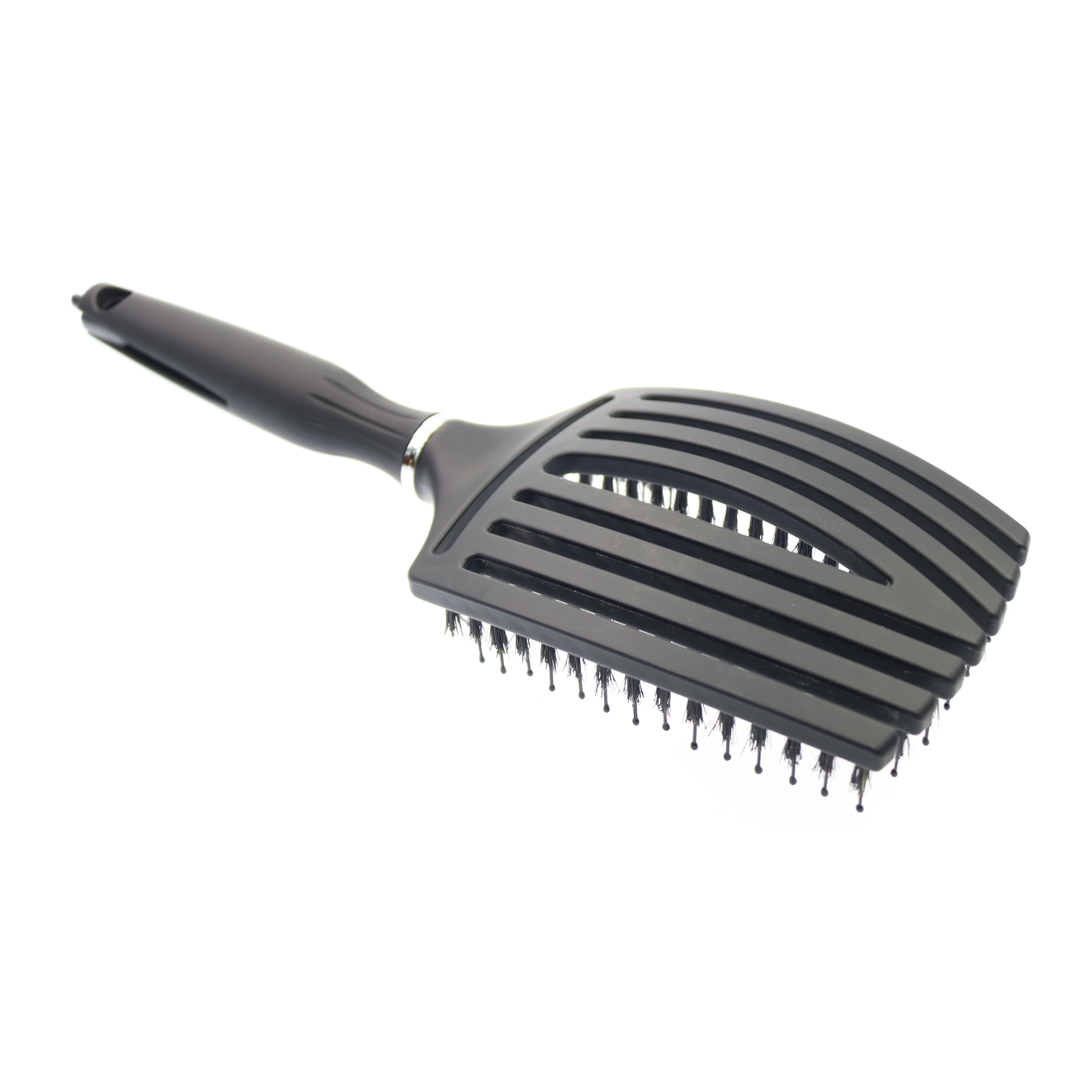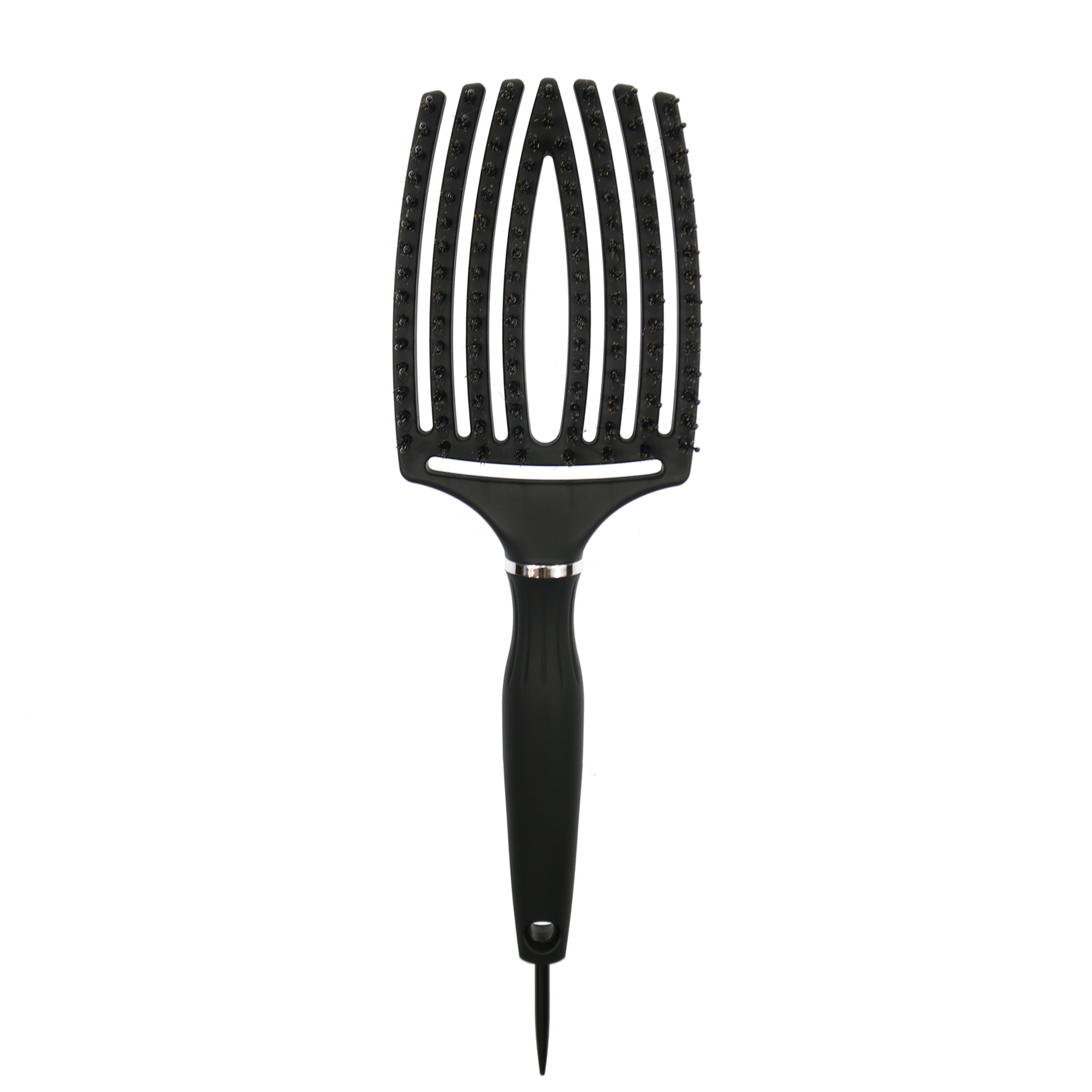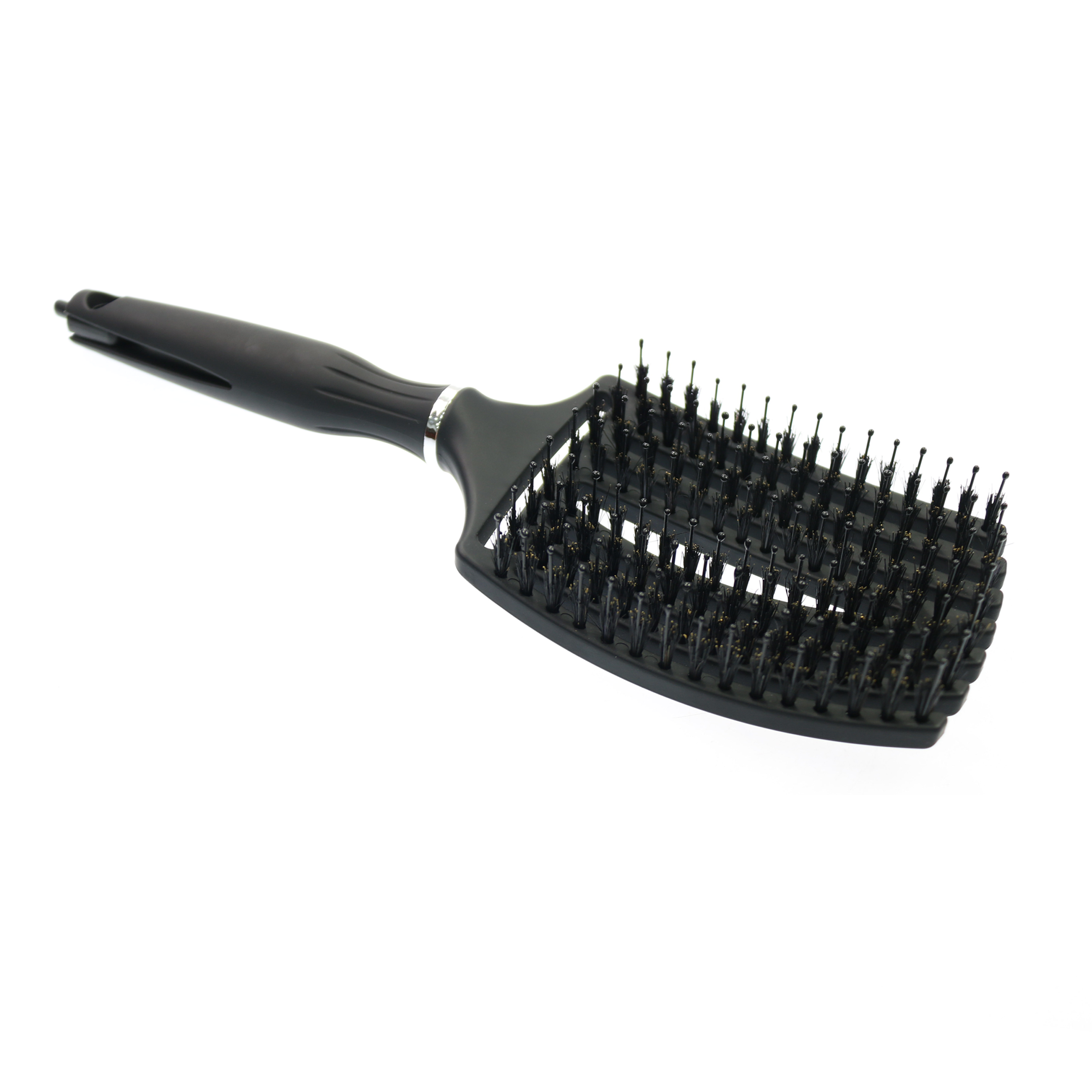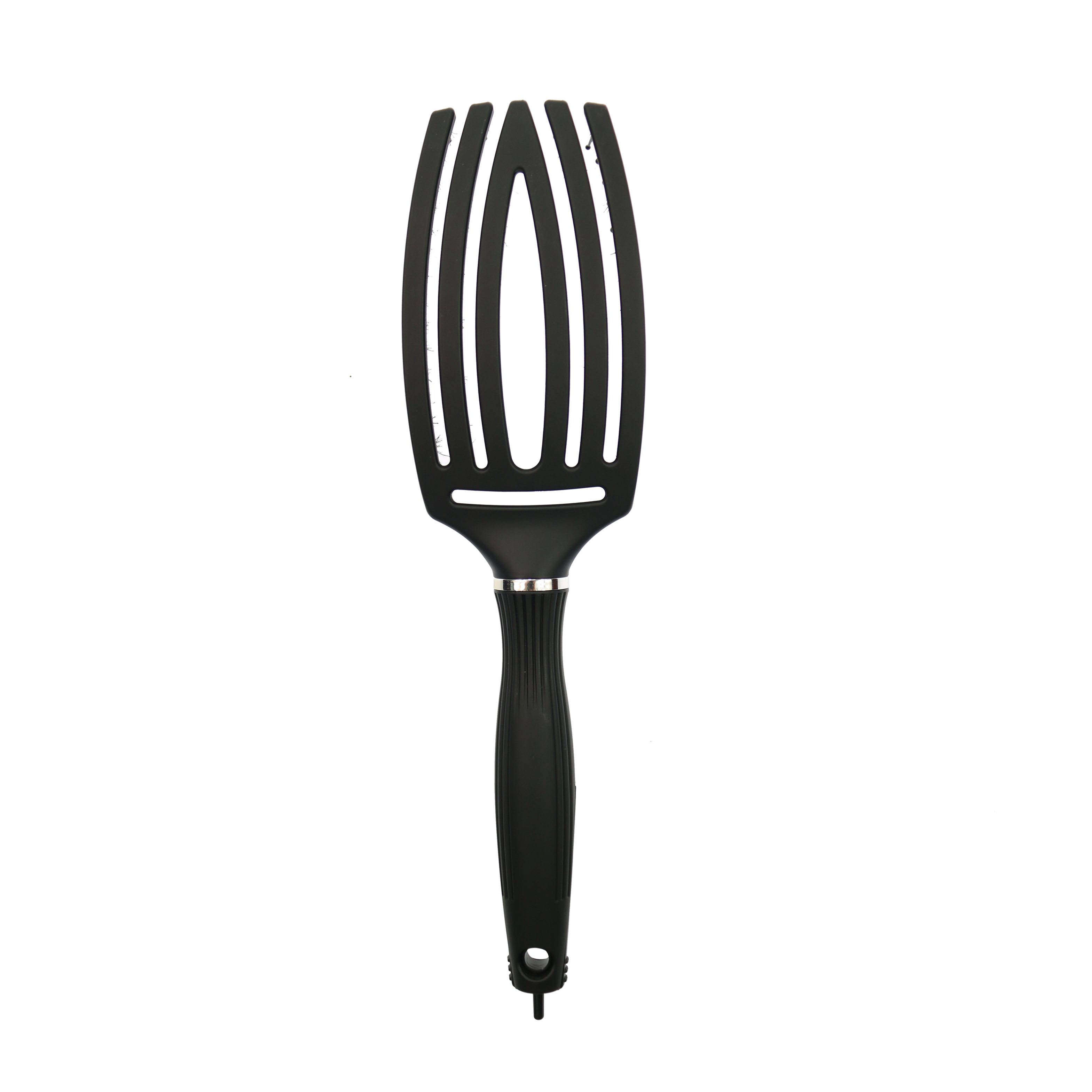 Product Description: Specifications: Two sizes: Small: 6 rows of teeth, Large: 8 rows of teeth Material: ABS shell sprayed with rubber oil, nylon teeth 1. The head of this brush is composed of forked curved bars. The small size has six bars, the large size has eight. The bifurcated design allows for independent swinging of the bars, preventing them from interfering with each other. This provides a certain degree of flexibility when combing hair, preventing hair from being tangled. 2. The wide spacing between the bars makes it easy to remove hair that has become tangled. 3. The hollow design allows the hot and cold air to penetrate the hair better when blow-drying, resulting in faster drying. 4. The overall curved design conforms to the shape of the head, with concave ribs for easy rotation and grip. 5. The tips of the bars are rounded, making them gentle on the scalp and ideal for scalp massage. 6. The tail of this brush has a built-in pointed pin. When attached with the end facing…
