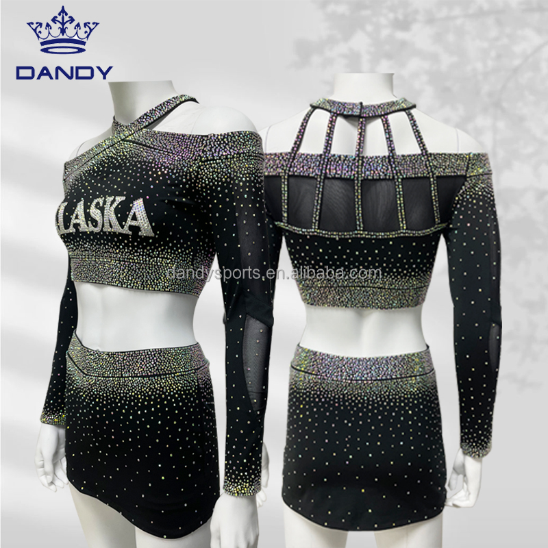 Custom Mystique Long Sleeve Cheerleader Costume Product Details Product Type: All Star Cheerleading Uniforms Supply Type: OEM service Fabric:Lycra(upper body)+Organza(skirt)/others + mystique + holograms The stretchy materials will give enough for comfortable movements Fabric weight: 250gsm Feature: 1.Cut and sew, sublimated, mesh lining 2.Custom logos and labels 3. Anti-UV, waterproof,light 4.4 and 6 needle flat lock stitching 5.Elegant, charming and comfortable Usage: ballroom dance, competition, performance, dancing lessons, or special occasions. Design: Custom design availale Logo: Custom logo available Color:Custom color available&nbs…