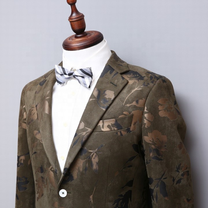 Fashion MTM wholesale custom print blazer official mens green suit for men Product Name . JACQUARD FABRIC MTM MEN COATS Item No . HP-008 Fabric . Woolen,Jacquard fabric. Collar . Notch lapel . Design pattern . MTM service,as customer's requirements lining Material . Polyester, or substitutable Decoration . handmade label hole,tie,embroidery. Technology . Yarn dyed .Printed,Embroidery,as customer's requirements. Delivery Time . 7 workdays after everything is confirmed MOQ . 1 Set . (1) What's the MOQ? 1000 pcs each color for all of the suits. However, a trial order is available for you to check our quality.…