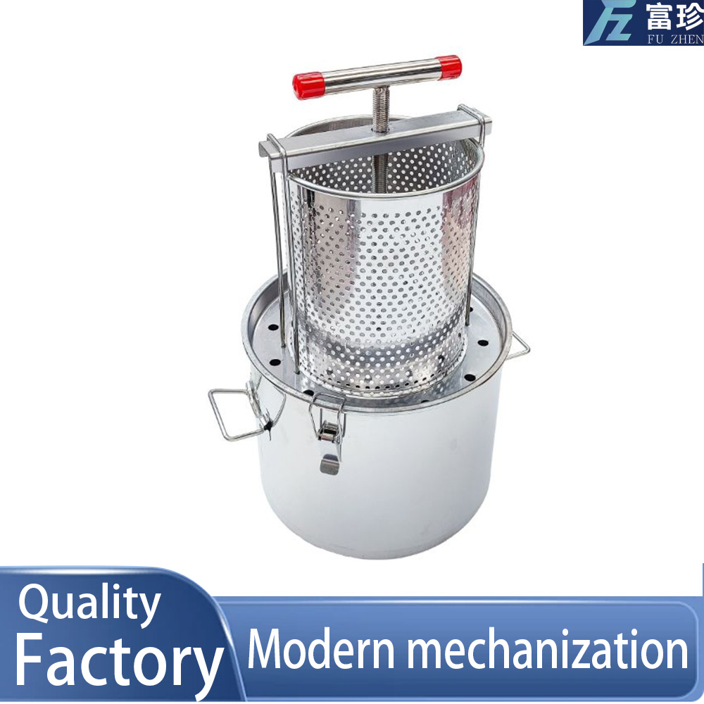 This stainless steel manual food press with a collection bucket is a versatile and robust tool designed for efficient juice extraction and ingredient pressing in both home and commercial kitchens. Constructed from high-quality stainless steel, it boasts exceptional durability, corrosion resistance, and easy maintenance, making it a reliable choice for various food preparation tasks. The set includes a perforated pressing basket, a manual screw mechanism with an ergonomic red-handled crank, and a sturdy collection bucket with side handles, all integrated into a cohesive and functional design. It excels at extracting juices from a wide range of fruits such as apples, grapes, and berries, as well as vegetables like tomatoes and cucumbers. Beyond juice extraction, it is also ideal for pressing tofu, fermented foods, and ingredients for making jams, jellies, and sauces. The manual operation allows users to adjust the pressing pressure according to the texture of the ingredients, ensuring…