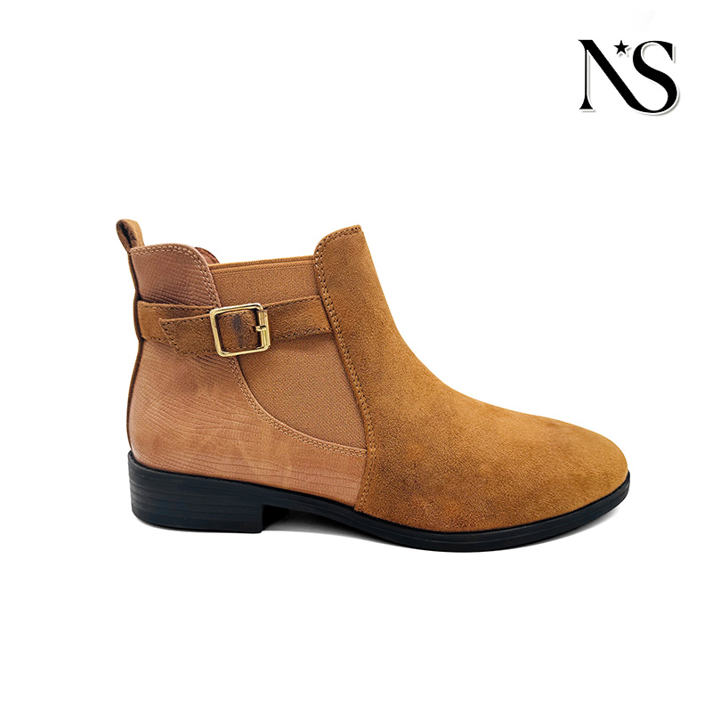 The low block heel provides just the right amount of lift, offering both style and comfort for all-day wear. Whether you're heading to the office for daily work, exploring the streets on casual outings, or going on weekend shopping trips, these boots are designed to keep you looking chic and feeling at ease. Crafted from high-quality suede, these ankle boots are not only visually appealing but also durable. The material is soft to the touch yet resilient, able to withstand regular use while maintaining its luxurious appearance. Attention to detail is evident in every aspect, from the sturdy buckle construction to the precise stitching of the sole and upper. When it comes to style versatility, these boots shine. Pair them with tailored trousers and a blouse for a polished office look, or combine them with jeans and a sweater for a casual, laid-back ensemble. The classic tan color allows for effortless pairing with a wide range of outfits, making them a staple in any wardrobe.…