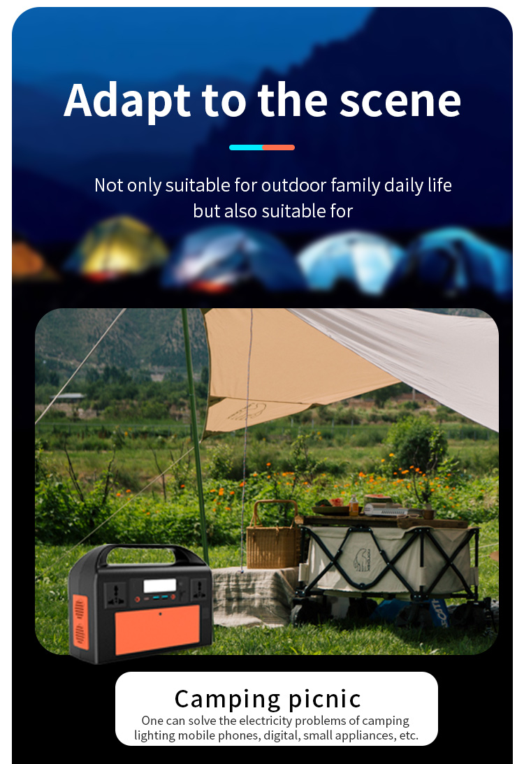 The market potential of outdoor power supply is huge: consumers include outdoor, camping, fishing enthusiasts, RV travelers, and self-driving tourists. There is no municipal power supply for mobile phones, computers, rice cookers, refrigerators, hot water kettles, fans, and other small household appliances. Long-term outdoor work requires stability, adequate power supply, and professional camera team. Outdoor live broadcast team, etc. It is necessary to provide power supply for cameras, lights, tracks, monitors, computers and other specialties in a timely manner. In addition, outdoor power supply is required for outdoor inspection by the Ministry of Electric Power, emergency repair of electric power, small and micro medical first aid instruments and geological disaster rescue devices. Compared with the traditional fuel generator, the outdoor power supply has the advantages of low noise, light weight, portability, high safety and low pollution. Scope of application Our products i…
