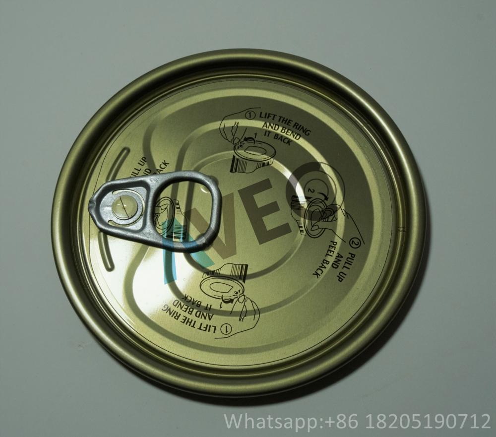 Easy open end is widely used for metal tin cans. It adds convenience for consumers and often feature a ring-pull, which eliminates the need for a can opener. It also ensures a safer, tamper-evident product. We produce full range diamters of easy open ends (EOE), including but not only 50mm, 52mm, 65mm, 70mm 73mm, 83mm, 99mm, 127mm and 153mm. We provide various food grade lacquering: white BPA NI, Aluminum paste, gold, clear, etc. Customized printing design is also acceptable. If any interest, welcome contact us for more details or for an official quotation.