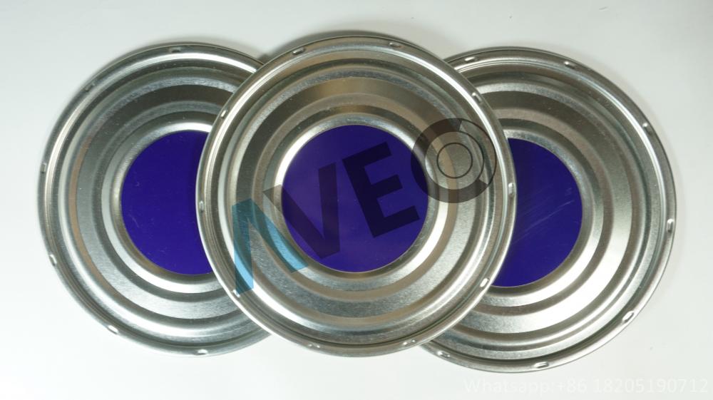 Product Descriptions Type: 401 (73mm)/ 502 (99mm) Tinplate Bottom Ends Size: 0.2-0.21mm T3 BA 2.8/2.8 Coating: Backing+Blue+Varnish The 401# 99mm and 502# 127mm diameter blue bottom ends, are mainly used for powder cans. It's inside food grade clear lacaquered, outside with white round base+blue printing+Protective varnish. Our clients can print the production date, expiry date info on the blue part with laser machines. We offer blue ends with dots, or just regular. All lids are packed in water-proof plastic sleeves, and loaded onto wooden pallets. Our capaity is more than 5 million pieces per month, standard lead time is about 15 days. If any interest, welcome contact us for more details.