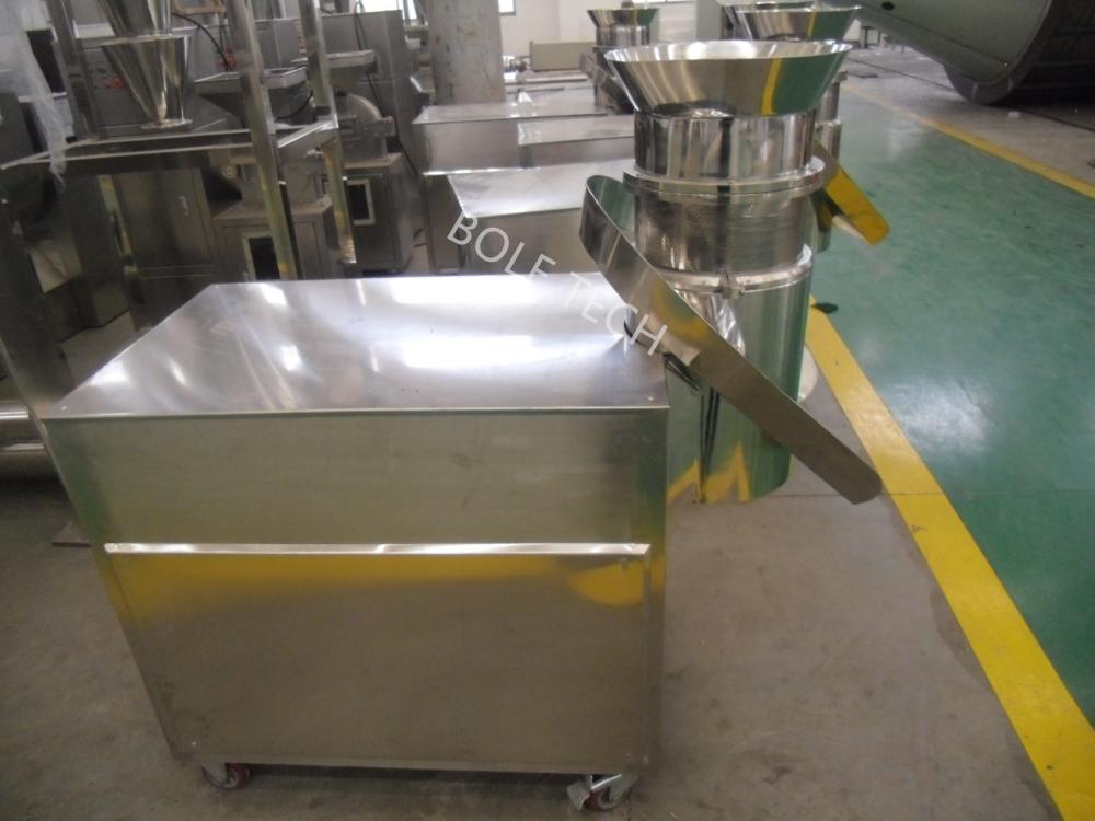 Description of Extruding granulator: The column shape granule Rotary extruding granulator is the ideal equipment used in medicine industry, foodstuff industry, chemical industry and so on. It can make the stirred raw material granulate the needed granule, especially for the material with high viscosity. Rotary extruding granulator is used for wet granulation, which mainly consists of drive motor, feeding hopper, extrusion blades, screen and discharging chute. Wet mass is gravity fed into the granulator and wiped through the perforated screen by extrusion blades to get require-sized cylindrical extrudates. Finished granules are discharged into the barrel via the chute. The gap between blade and screen is adjustable. It is most often used in medicine, food and chemical industries for making granules with wet mass before spheronization. Features of Extruding granulator: The Rotary extruding granulator adopts one pair of rotating grind…