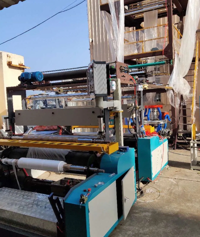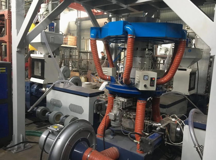 The High Speed Double Color PE Film Blowing Machine is a specialized piece of equipment designed for producing high-quality polyethylene (PE) films with dual-color stripes. This machine is capable of processing both low-density polyethylene (LDPE) and high-density polyethylene (HDPE) materials, making it versatile for various applications. Key Features: Dual-Color Capability: The machine can produce films with two different colors, making it ideal for creating visually appealing packaging materials. High-Speed Production: Equipped with advanced extrusion technology, it offers high-speed production capabilities, ensuring efficient output. Precision Engineering: The extruder's cylinder and screw are made from high-quality alloy steel, treated with nitrogen for enhanced hardness and corrosion resistance. This ensures durability and reliability during operation. Adjustable Film Width and Thickness: The machine can produce films with a maximum width of up to 600mm and thickness rang…