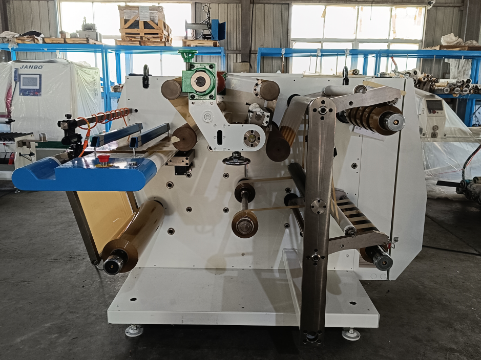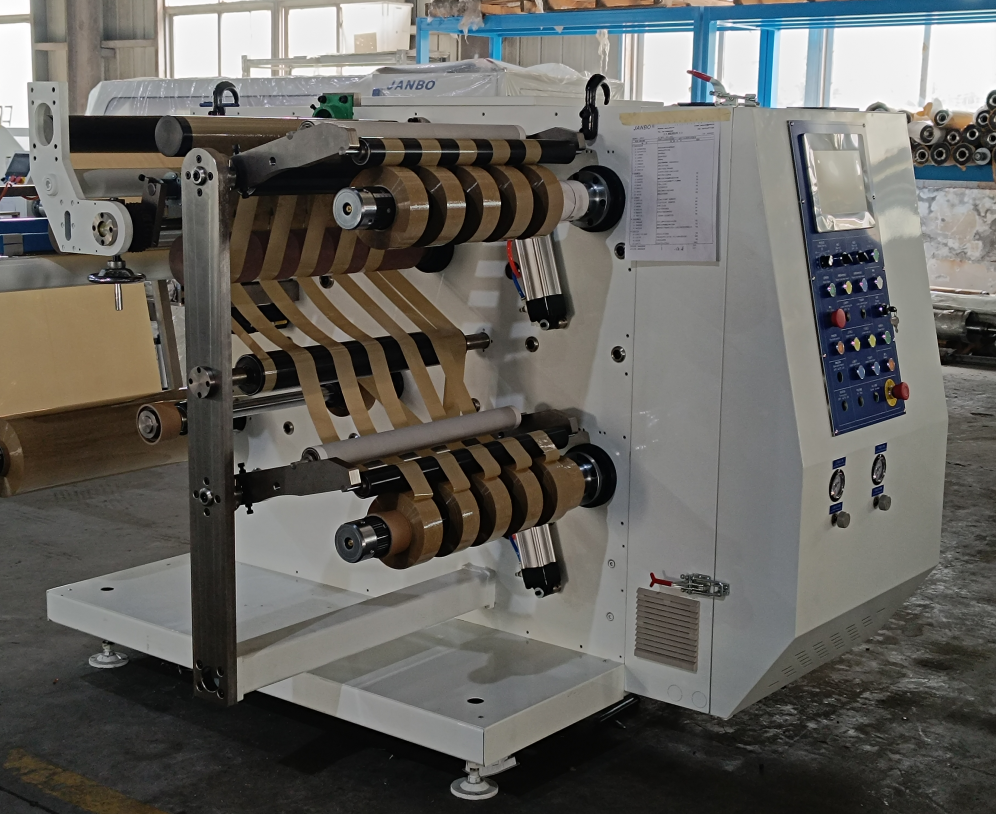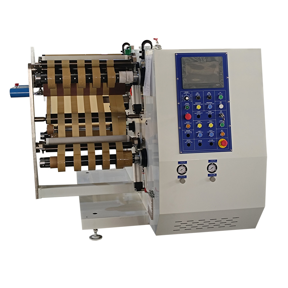 The machine adopts three-motor synchronous control and an automatic tension control system, with center rewinding method. 1. This machine uses a variable frequency speed-regulating motor to ensure smooth operation during acceleration. 2. Mitsubishi PLC programmable logic controller central system. 3. LED touchscreen interface for tension, slitting length/width, and parameter input. 4. The unwinding adopts an axial type movable machine base with electric automatic edge alignment device(EPC correction system). 5. Configured with circular blade/ industrial straight knives longitudinal cutting and edge waste automatic rewinding device. 6. The rewinding unit adopts 2 pcs 3" air shafts(upper and lower). 7. The rewinding pressure roller structure with adjustable air pressure meets various material slitting/rewinding process requirements. 8. Integrated control box with button-type operation panel. Purpose:Suitable for slitting and rewinding various tapes. Machine Width: 60MMMax. Unwind O.D: …