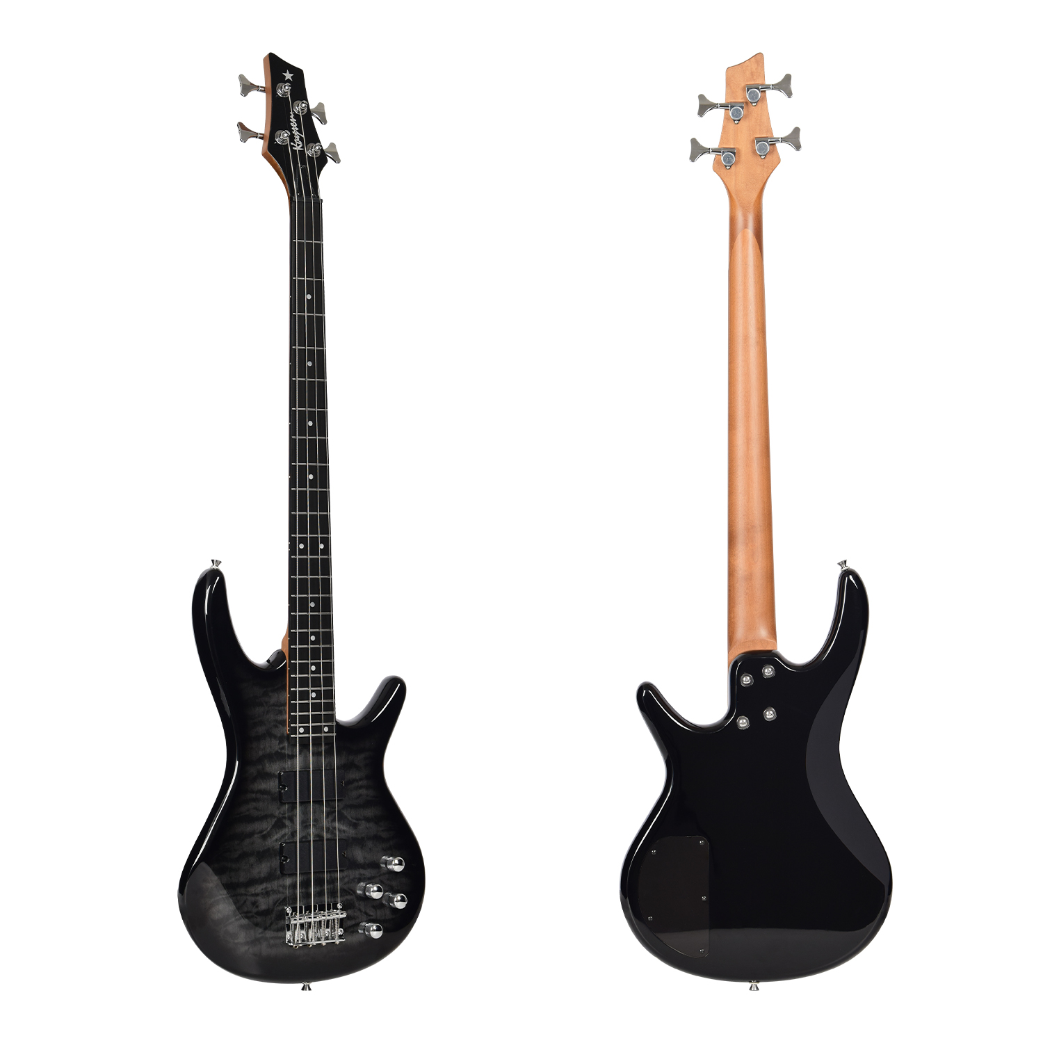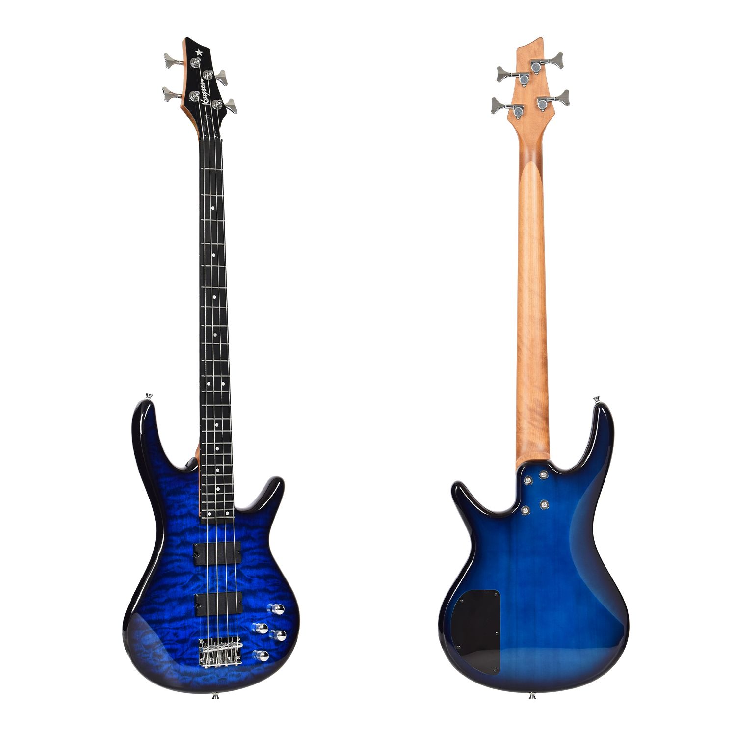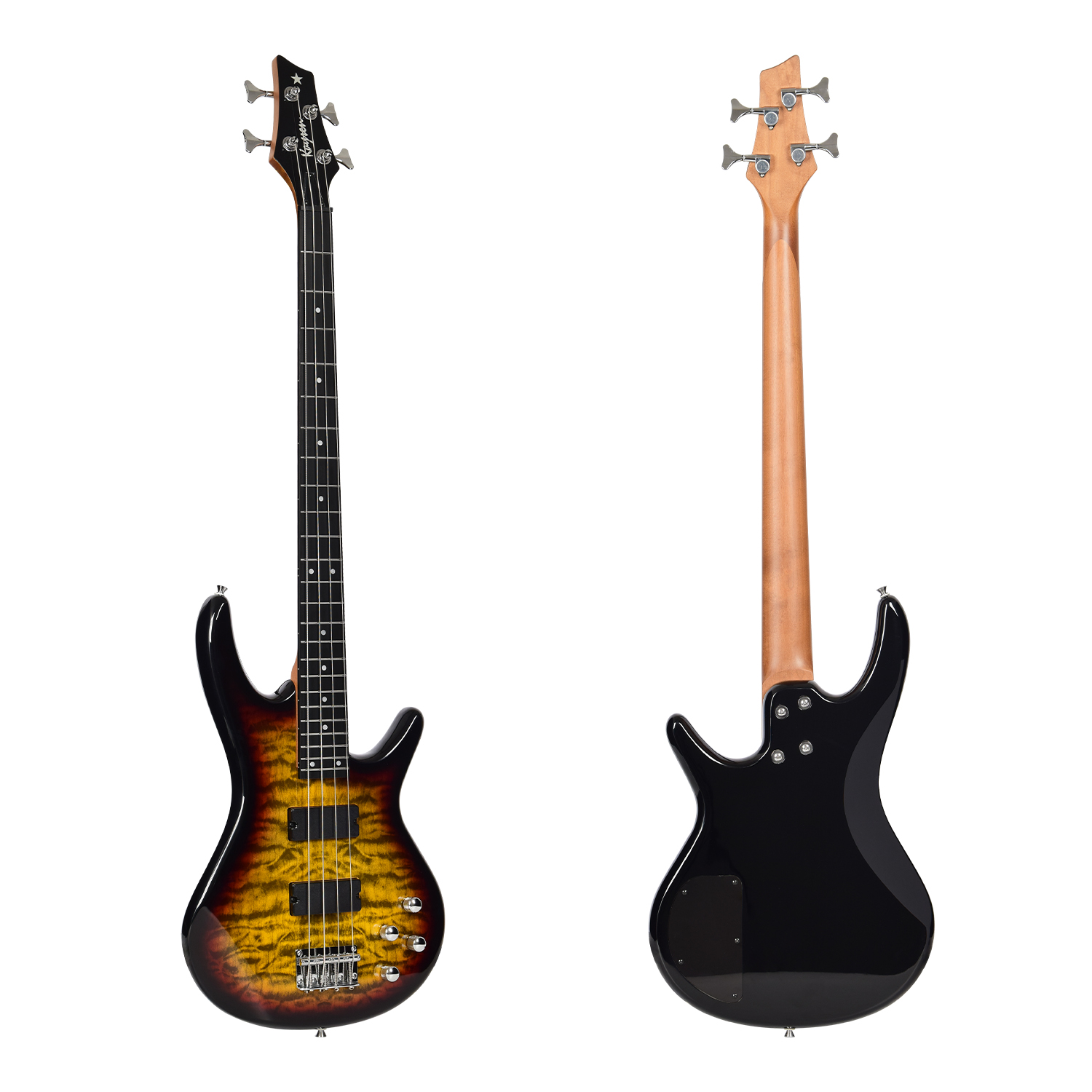 Kaysen 4 strings electric bass guitar KIB-260 is a good choice for beginner player and also suitable for all guitarists. The body is made of poplar wood with water ripple veneer. The fingerboard is made of rosewood with 24 frets. With round head frets design, it's more comfortable when playing with this model electric bass guitar. The neck is C type and is made of roasted maple wood. The bass guitar is with H H pickup and with 2 volume 2 tone. The head machine is made of die-cast tuning. With high gloss finished, the whole bass guitar looks better. Logo customization is offered for Kaysen guitar KIB-260. Not only 4 strings bass guitar available, 4 strings styles are also supplied. Besides bass guitar, acoustic guitar, classical guitar, electric guitar, concert ukulele, violin, cajon drums etc and all kinds of musical instruments accessories like guitar bag, guitar strings, guitar strap, guitar speaker and so on. Product Name: Kaysen 4 Strings Electric Bass Guitar Body: Popl…