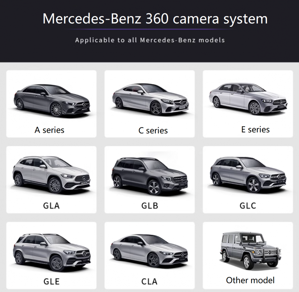 Future Technology Universal 360 degree car camera system for Mercedes Benz 1, Allwinner T5 control, high performance, low power consumption, fast respond, smooth operation 2, Four HD 1080P camera monitoring the blind area real time, can be used as dash cam, support loop recording, when the memory is full, will cover previous video automatically 3, Support dynamic reversing track, when you swift to reverse gear, it will automatically swift to full screen reversing image, help you to reverse car perfectly 4, Easy to install, non-destructive installation, no punching 5, Radar anti-collision warning, when the vehicle is moving forward/backward, the original car radar monitors the front/rear approaching obstacles, and automatically emits a beeping sound, giving you an early warning to avoid damage 6, Suitable for all the Mercedes Benz models. If you need more 360 surround view camera system, please contact with us. Item No. FQ-0…