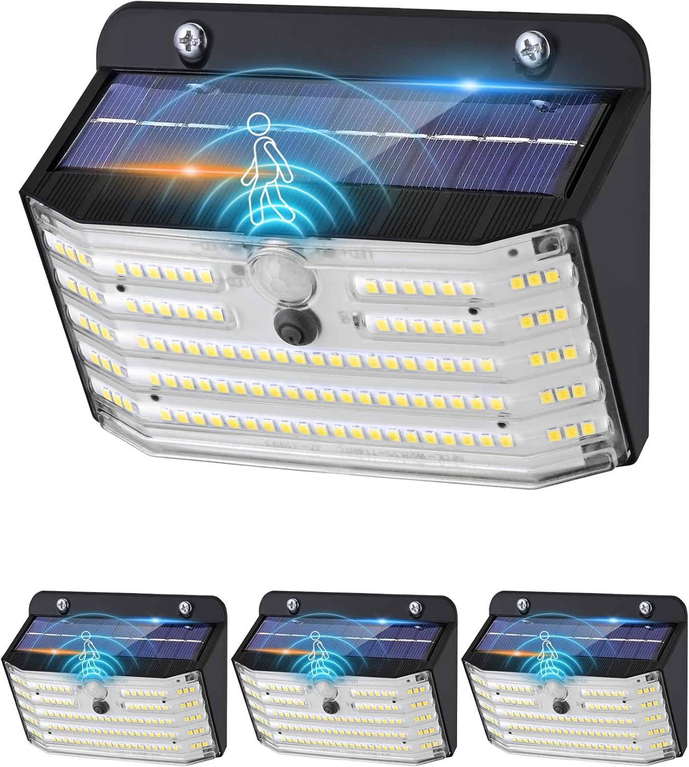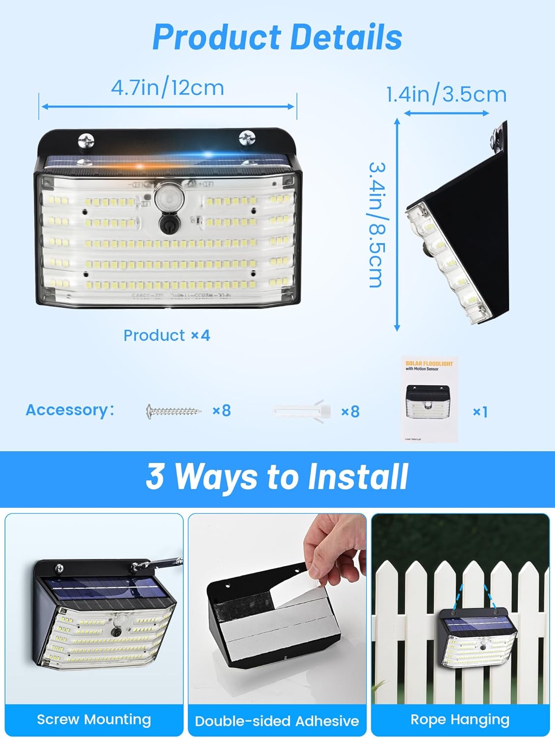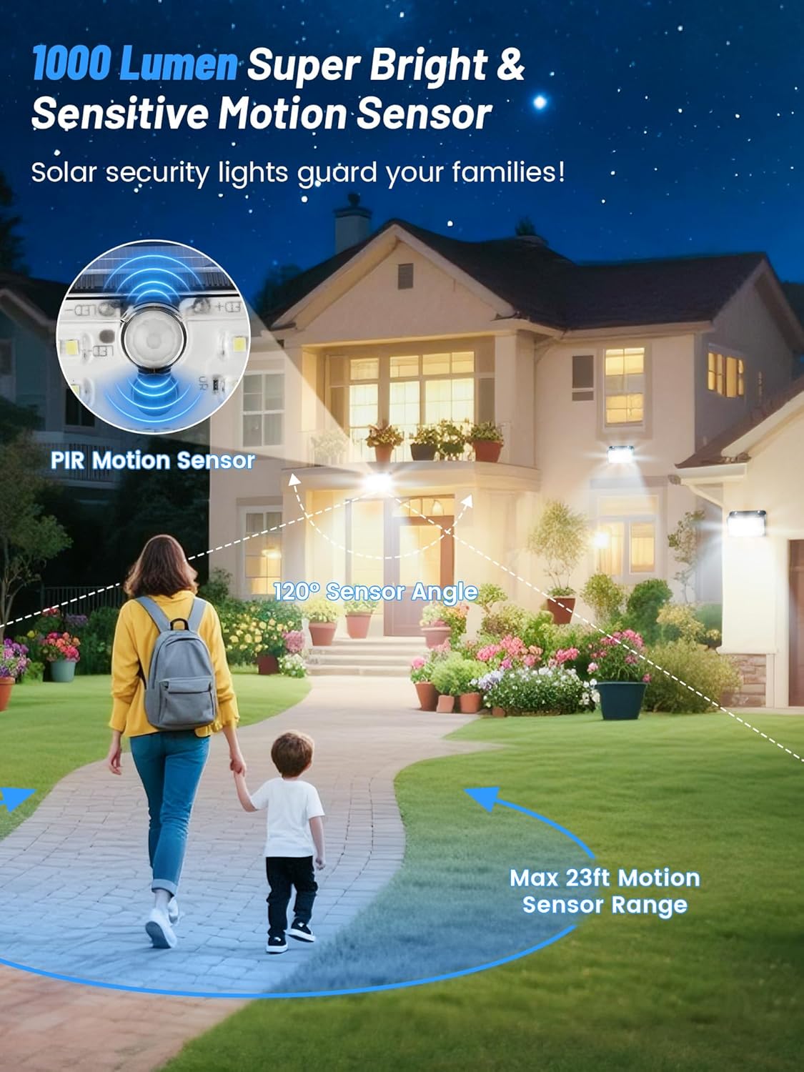 JIXIN Solar Wall Lights Outdoor Waterproof,1000Lm Solar Motion Lights Outdoor Waterproof with 3 Lighting Modes & 270°Wide Angle, Solor Outside Light for Fence/Deck/Yard/Patio/Garden/Stairs Product Introduction of Motion-Activated Wall Light Motion-Activated Wall Light is an innovative product specially designed for outdoor intelligent lighting. With precise human body sensing technology and flexible scene adaptation capabilities, it perfectly integrates the advantages of various solar lamps, providing efficient, energy-saving and safe lighting solutions for different outdoor Spaces. As the core positioning, Solar Wall Light adopts a wall-mounted installation design. It does not require complex wiring and can be easily fixed on the exterior walls of houses, garage entrances, balcony railings and other positions. The built-in high-precision human body sensing module can accurately capture human movement trajectories within a sensing distance of 10 meters and a sensing An…