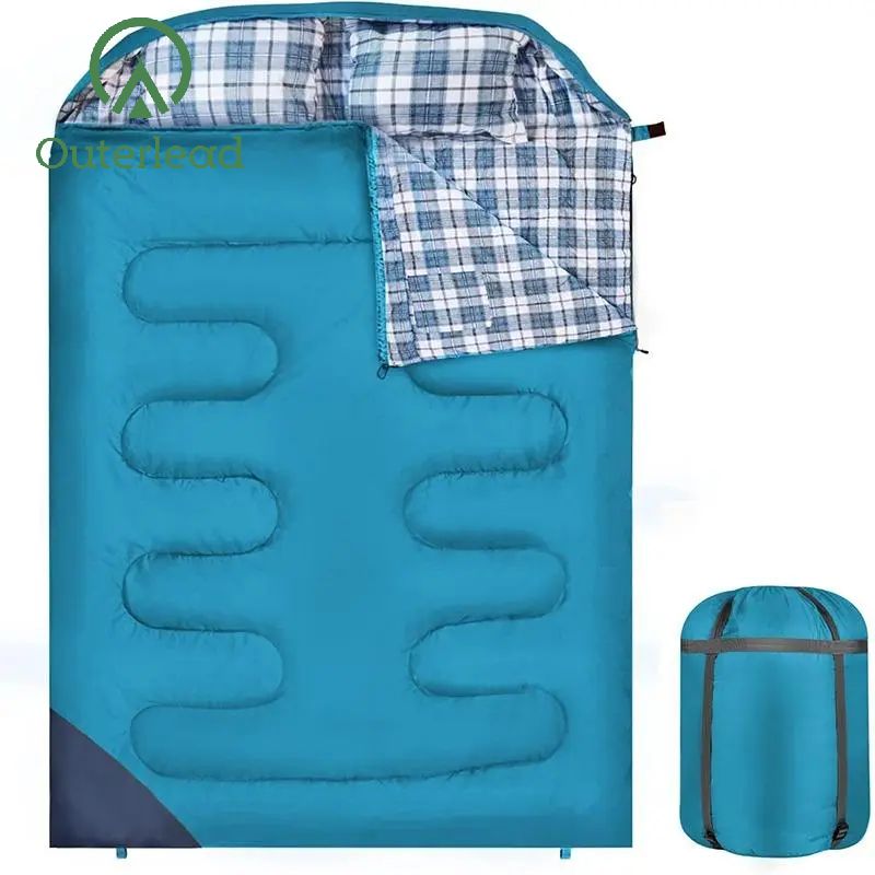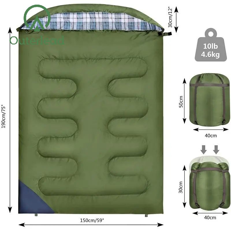 Looking for a comfortable family sleeping bag that can keep you warm and cozy while camping? Look no further than our premium sleeping bag from Outerlead! Crafted with a soft cotton flannel lining, this sleeping bag is designed to provide maximum comfort and warmth, making it the perfect choice for your next outdoor adventure. Featuring zipper and shoulder draft tubes that keep the warm air in, this sleeping bag unzips on each side and the bottom for easy access, so that you can get in and out of it quickly and easily. But that's not all - this cold weather sleeping bag also features innovative fiber fill for extra warmth, making it ideal for chilly nights under the stars. And with our unique compression sack, you'll never have to roll your sleeping bag again! Simply stuff it in from the bottom, tighten the heavy-duty straps, and you're ready to go. For even more warmth, be sure to fluff your sleeping bag and use a camp pad to sleep warmer. And when it'…