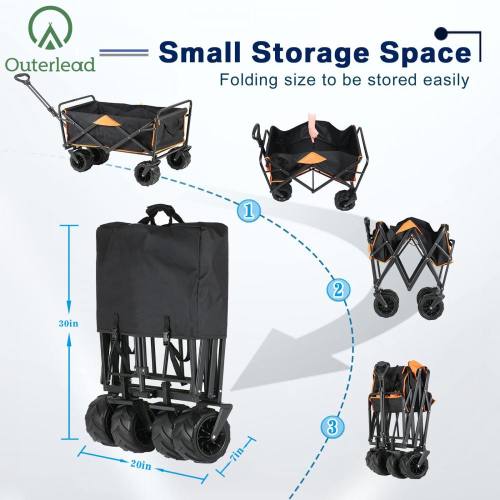 Introducing the ultimate outdoor gear for all your adventures - the Outerlead 350 Lbs Capacity Portable Folding Wagon! Made with a heavy-duty metal frame, this collapsible wagon is solid and durable, ensuring a high-capacity load of up to 350 lbs. The fabric material is made of 600D fabric and PVC coating, making it waterproof and long-lasting. With a size of 35.4"x21.6"x19.6" and folding dimensions of 30”x20”x7”, this wagon is perfect for transporting all your outdoor essentials. Setting up and folding the wagon is a breeze, with no assembly required. It is fast and easy to set up in seconds, and the attached handle makes it easy to move around. The wagon can be compactly folded and stored in a compact car or garage for easy transport. The all-terrain wheels of the wagon make it perfect for use on any surface, whether it's snow, dirt, street, grass, or even rocky terrain. The solid wheels of 4”x7” make it easy to navigate street curbs or rocks fast, eve…