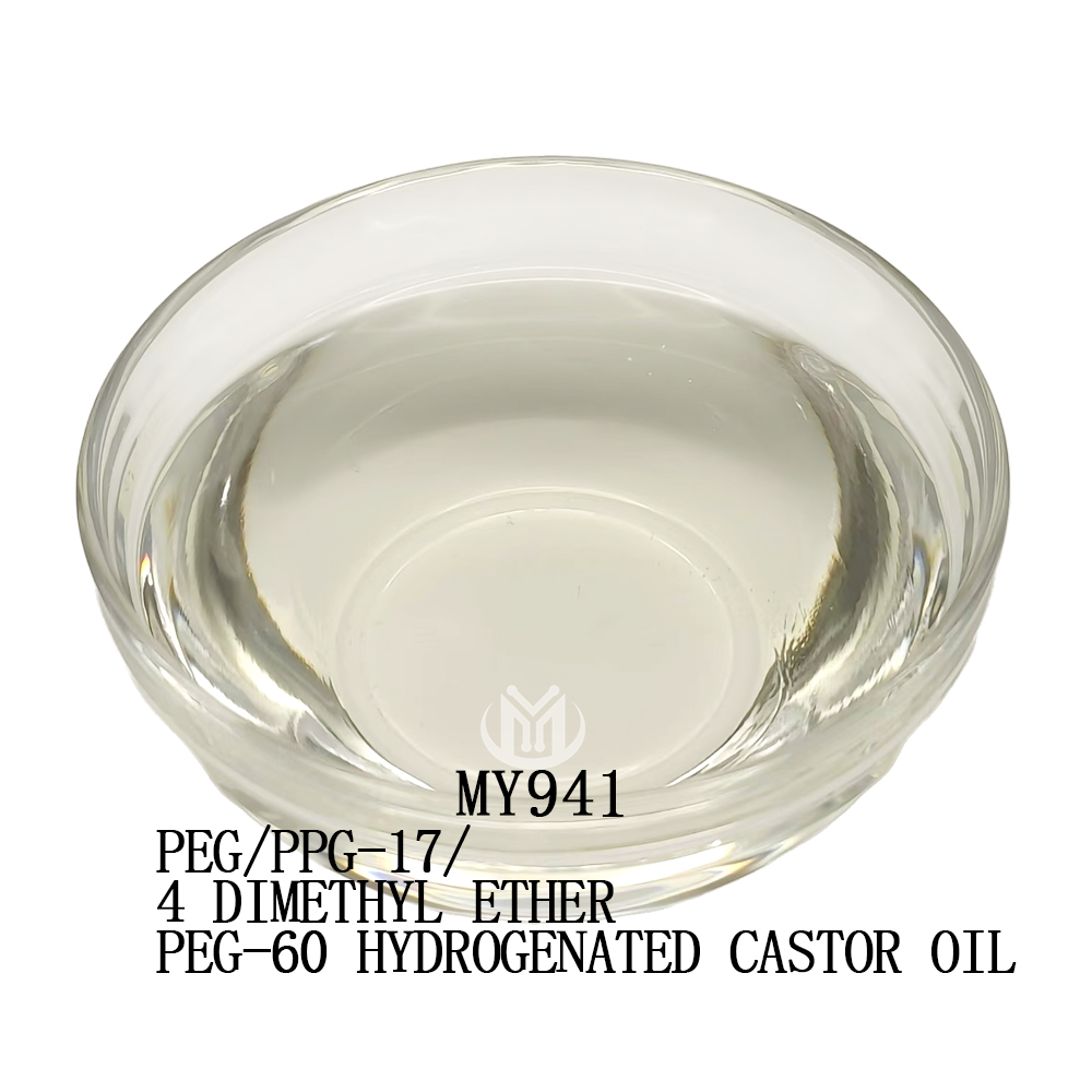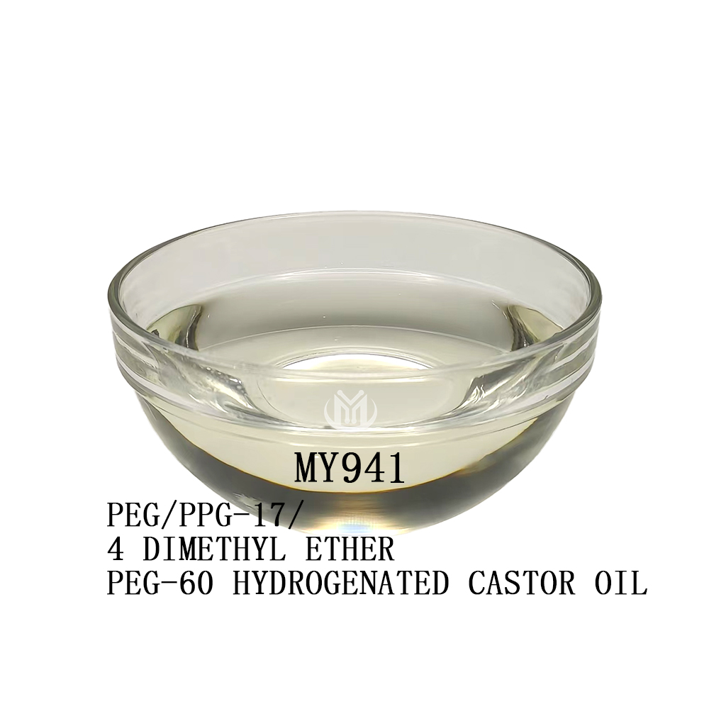 PEG PPG-17 4 Dimethyl Ether Cosmetic Solubilizer CAS NO 8001 78 3 OILREE ® MY941 is a transparent and clear liquid solubilizer for Peg Ppg 17 4 dimethyl ether Peg 60 hydrogenated castor oil, designed specifically for systems that require efficient solubilization of lipophilic components. Its unique double polyether structure endows it with both hydrophilic and lipophilic properties, allowing it to form stable and clear solutions even in the face of complex oil-based components. Compared with single component solubilizer, MY941 has better compatibility with a variety of active substances, essential oils and essence, enabling water-based formulations to achieve high transparency and low turbidity; At the same time, its texture is easy to flow and its viscosity is moderate, making it very suitable for cold processing production, and it can still maintain stable performance under seasonal temperature changes. MY941 can serve as an efficient emulsion wax substitute for solubilizatio…