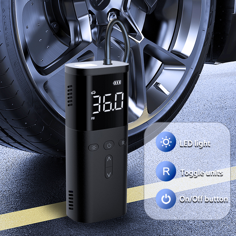 Tire Inflator Portable Air Compressor,DC 12V Small Pump for Car Tires,150PSI Electric with Digital Pressure Gauge,LED Light Motorcycle Bike Ball,Bike Pump 【150PSI Superfast Cordless air Inflator】Tire inflator portable air compressor provides max pressure of 150 PSI and airflow of 17L/Min. When the tire inflator fully charged, 30PSI tires can be inflated to 35PSI in 5 minutes (standard tire 205/55/R14). Car tire pump takes less than 2 mins to fully inflate a mountain bike tire. This portable tire inflator for car definitely a good helper for solving emergencies on the way. 【4000mAh Ultra-big Battery Capacity】KSCYE The car tire inflator built-in 4000mAh rechargeable battery. The electric tire pump does not require an extra power supply while inflating and can provide a cordless continuous inflation up to 45 mins. This portable tire inflator can also inflate other items such as footballs, basketballs, air mattresses, arches, swimming rings, and more. Its multifunctional nat…