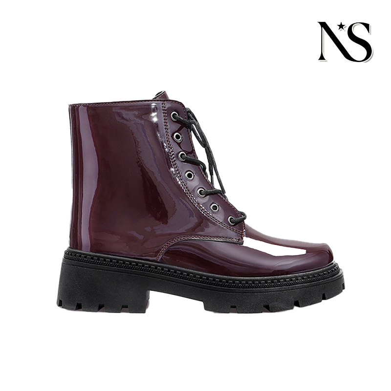 The Burgundy Patent Leather Lace-Up Chunky Sole Ankle Boots for Casual Wear are a bold, fashion-forward footwear option that merges glossy style with everyday practicality. Crafted from shiny burgundy patent leather (or high-quality faux patent material), these ankle-high boots feature a classic lace-up front, side zipper closure, and a thick textured chunky sole—making them ideal for adding a statement touch to casual daily outfits. Constructed to balance style and comfort, the lace-up design allows for adjustable fit around the foot and ankle, while the side zipper ensures easy on-and-off (a key convenience for busy routines). The chunky black sole provides elevation and a contemporary edge, while its rugged tread pattern offers stability for walking on city streets, sidewalks, or light outdoor surfaces. The glossy burgundy finish adds a vibrant, eye-catching element that stands out in any ensemble. The ankle-high cut offers moderate coverage, making the boots suitable for…