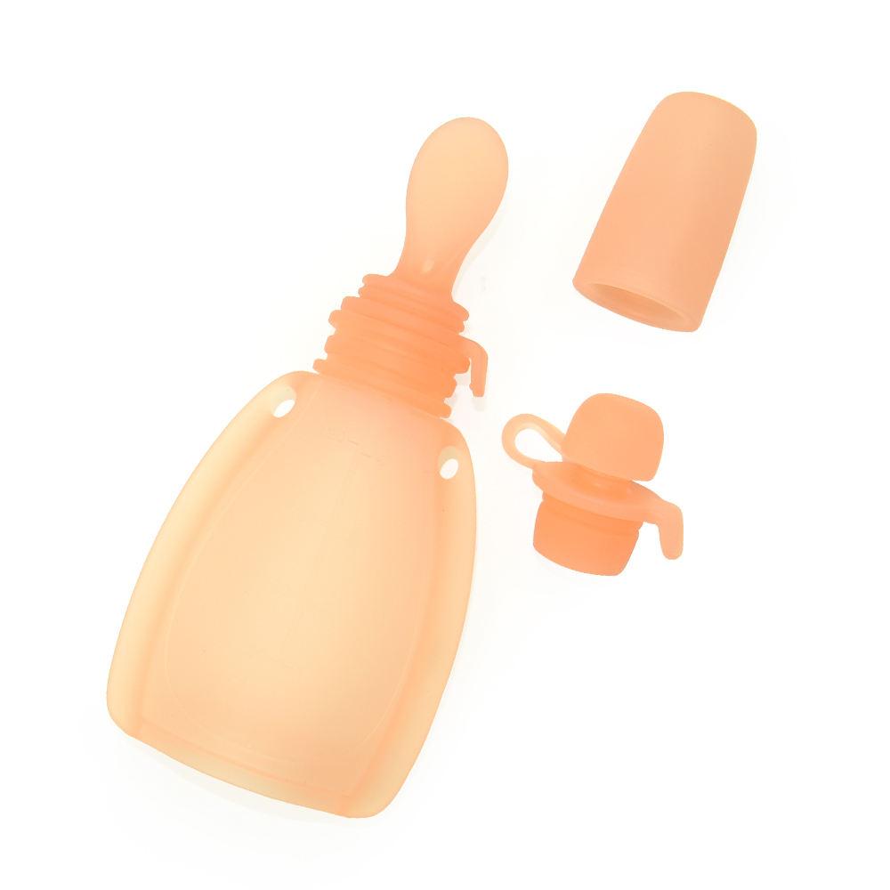 Silicone Squeeze Pouch with Spoon | 2-in-1 Feeding & Storage Safe, leakproof, and easy for on-the-go baby meals Product Overview This silicone food pouch is a 2-in-1 essential: a leakproof storage bag and a built-in food pouch spoon for mess-free feeding. Crafted from food-grade silicone, it works as a breast milk bag, baby food pouches, and juice container—perfect for busy parents. Key Features 2-in-1 Design: Doubles as a silicone pouch and a food pouch spoon for feeding and storage Food-Grade Silicone: BPA-free, safe for baby’s food and drinks Easy Squeeze: Soft, flexible body lets you squeeze purees and juices effortlessly Leakproof Seal: Secure cap prevents spills, ideal for travel and fridge storage Clear Volume Markings: 120ml scale for precise portion control Portable: Built-in loops for easy attachment to strollers or diaper bags Reusable: Replaces disposable squeeze pouches and food pouches How to Use Fill with breast milk, puree, or juice Use the spoon to feed dir…