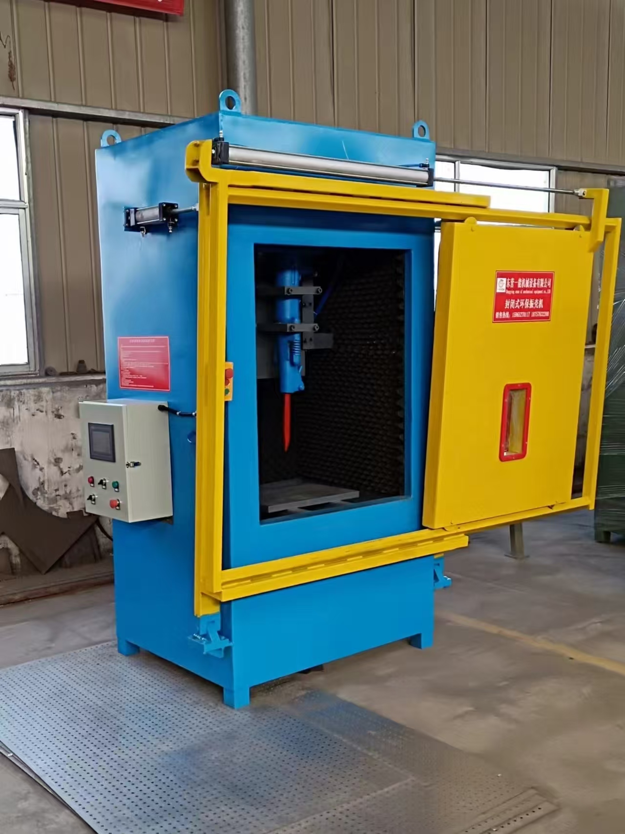 1.Technical parameter Product name Single door noise reduction vibration shell machine Model unit YN-HZK-950 Impact energy J ≥120 Impact frequency HZ ≥37 Air consumption L/S ≤54 Operating air pressure MPa ≥0.5 Operating noise level dB ≤85 Mould shell space available mm 600X650 Maximum pick height mm 650 Note: The equipment specifications and models can be customized according to customer requirements. 2.Product Structure1. The front of the soundproof enclosure features an automatic door-raising mechanism, which automatically raises the cylinder and has a locking device. After loading, a single button press instantly activates the programmable start/completion process: door closing, housing vibration, delay, vibration stop, delay, and door opening. 2. The height of the casting positioning mechanism is adjustable from 350 to 650 mm. If the height of the casting does not match the user's casting, the height of the suppo…