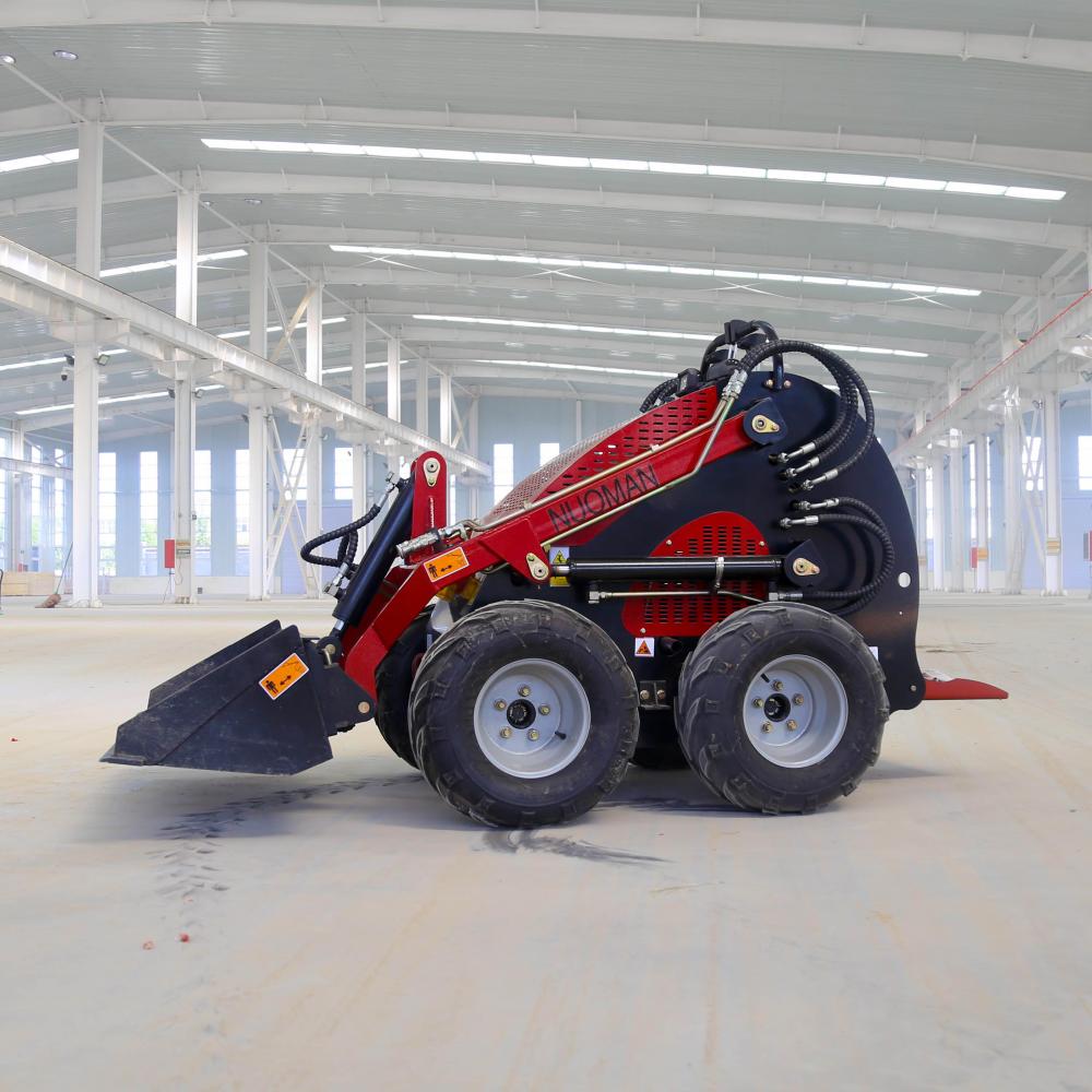 Product Application- China compact mini rubber asv track crawler skid steer loader for sale 380skid steer loader is NUOMAN brand, radial series researched and developed with world latest design standard. It is a new kind of product characterized by high efficiency, safey ,convenience and beauty. It is rubber crawler track skid steer loader type , two crawler driving and 360 degree skid-steering, wiht quick coupling to attach various attachments at jobsite easily. It can work in different working environments, rough terrain road working condition the heavy machine you have. Main Features 1) Power system : to use of world famous engines ensures machine strong power 2) Easy control type:Machinical control with two hand levers to control direction when using two foot pedals control working , quite easy and convenient. With hydraulict control, the operator can control every with two joysticks, from basic function to speed…