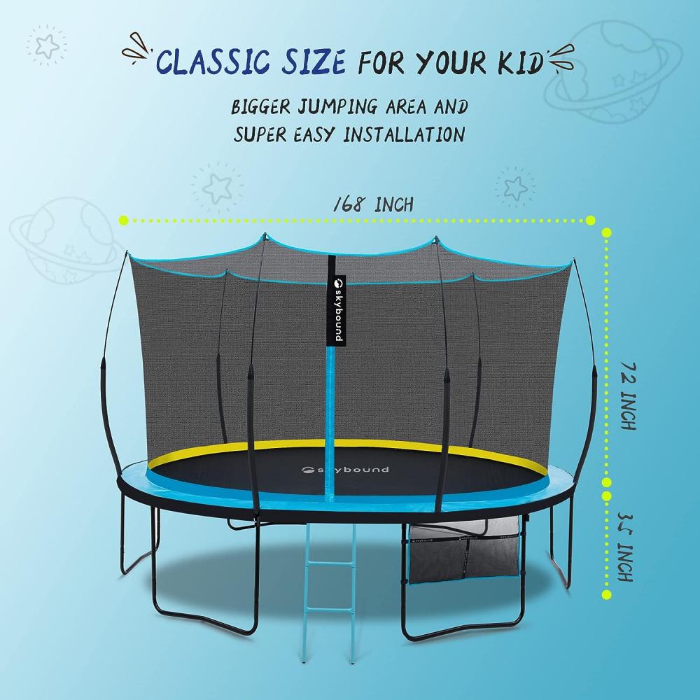 The spring free outdoor trampoline uses bungee cords instead of springs, the bungee connection system in patent design, wearing resistance. Preferred Bungee rubber quality and outer warping strings, which can with stand 200,000 fatigue test. The parents can easy assemble the springless trampoline by the tool. The kids trampoline is safer than metal springs. Sometimes metal springs broke and burst out, it may hurt the user or people around the toys trampoline. Soft bungee cords never has such issue. Highly durable, UV resistant, water-permeable and has a lifespan that is 6-8 times longer than that of regular foam pads. The outdoor trampoline pad is sewn with high-quality straps at the bottom, tightly wrapping around the frame to prevent loosening.