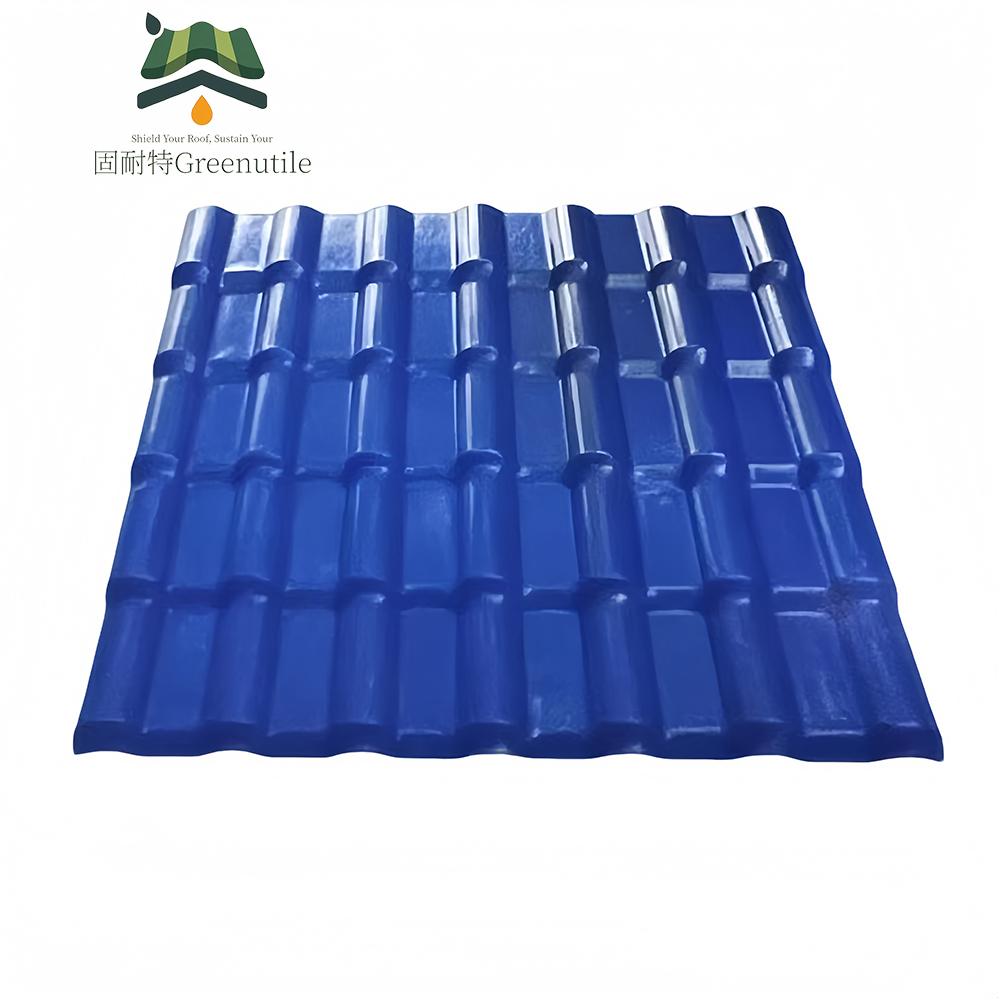 Product Descriptions Spanish ASA PVC Roof Tile for Residential HouseThese high-quality tiles are designed with advanced materials that ensure superior protection against harsh weather conditions, making them ideal for regions prone to extreme climates. Specifictions Materail PVC, Synthetic Resin, Plastic, Resin Brand Name Greenutile product place Foshan guangdong Thickness 2.2mm-3.0mm Width/Effective Width 1050mm/960mm Length can be customized Wave Distance 160mm Wave Height 30mm Pitch 219mm Usage Roof,suspended ceiling,wall panels,etc Product Features 1.Lasting Beautiful Color The surface material which ensures surface won’t fade in 10 years! 2.Good Sound Insulation Greenutile roof tile composite co- extrusion core layer shielding structure can greatly reduce sound transmission. 3.Heat Preservation And Heat Insulation The heat conductivity coefficient is 0.325w/m.k, about 1/310 of clay tile,1/5.0 of cement tile, and 1/2000 of thick color steel tile…
