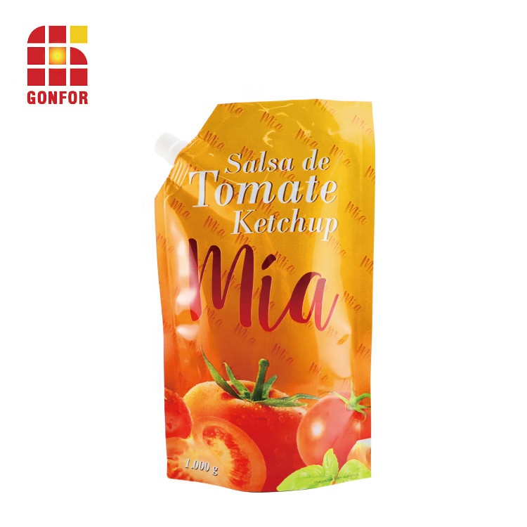 Product Description: Welcome to Zhejiang Gonfor Soft-package Co.,Ltd 1.We are the direct factory in China, Wenzhou City. We have 150lovely employee and happy work together. We can do any size, any print, any shape for food packaging, liquid packaging, chemical packaging, and other plastic, paper packaging. 2. This spout stand up pouch is suits to pack tomato sauce, cream sauce, cheese sauce, butter sauce, Mexician sauce and more dressing or house holding you want to pack is available. It is make of Laminated plastic film, 100% food grade material and safe! It can prolong the sauce shelflife. 3. The spout type and color can be customized. 4.All of spout stand up pouch have tested by QS, EU and FDA standards. Company Information Kraft paper bags stand up pouch Packaging & Shipping…