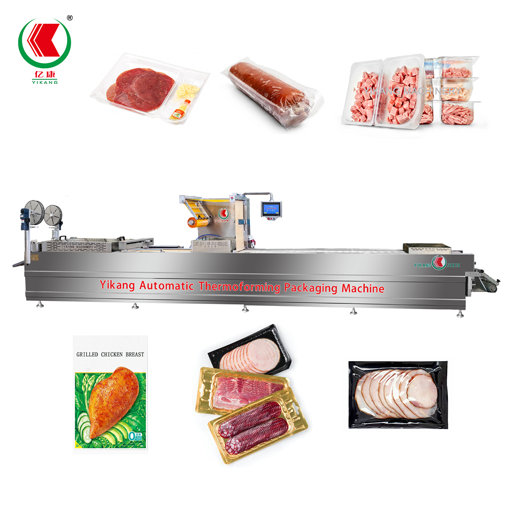 Yikang Professional Thermoforming Packaging Machines for Meat Steaks Choose Your Ideal Steak Packaging Solution. We Offer Three Specialized Machine Types - Vacuum, Modified Atmosphere (MAP), and Skin Packaging - Each Engineered for Specific Steak Packaging Requirements. Key Benefits at a Glance Steak-Specific Design: Each machine type features customized cavities and handling systems specifically engineered for various steak cuts - from delicate filets to robust ribeyes Tailored Preservation Technology: Select the perfect packaging method: Vacuum for freezing, MAP for retail freshness, or Skin for premium presentation Enhanced Product Appeal: All options deliver crystal-clear packaging that showcases steak quality, with specialized features for each packaging type Optimized Production Efficiency: Each machine is purpose-built for high-volume steak processing with minimal downtime and maximum output Customizable Configuration: Every machine can be tailored to your specific…