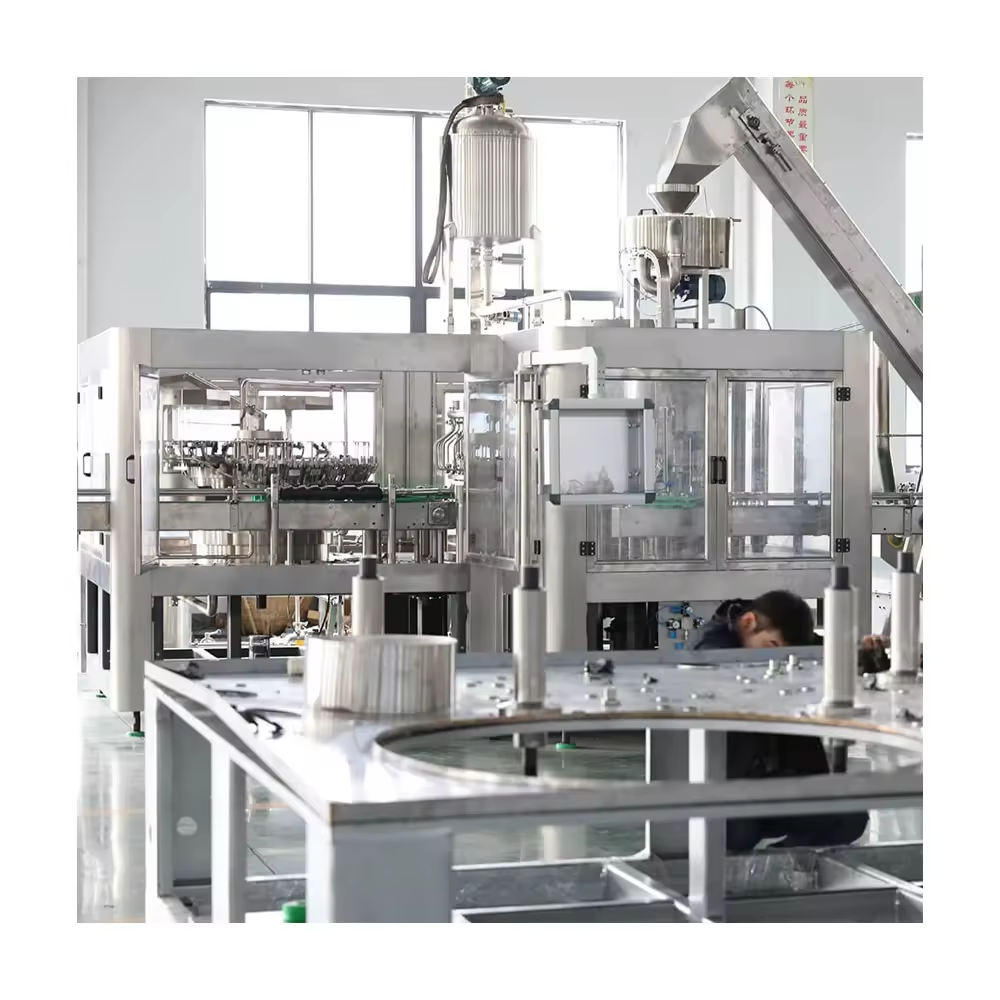 Three-in-one Juice Filling Machinery Juice Making Filling Machine Description It adopts a magnetic torque capping head to realize the functions of grabbing and capping. The capping torque is infinitely adjustable, and it has a constant torque plastic capping function. The whole machine adopts advanced technologies such as human-machine interface touch screen control, PLC computer program control, and frequency converter control. It has functions such as automatic control of the cap supply system, automatic detection of filling temperature, high temperature alarm of materials, low temperature shutdown and automatic reflux, no capping when there is no bottle, waiting when there is no bottle, and shutdown when there is no cap. Juice Drink Filling Machine Display The Specification of Juice Filling Machine Model RCGF12-12-6 RCGF18-18-6 RCGF24-24-8 RCGF32-32-8 RCGF40-40-10 RCGF50-50-12 Production Capacity (500ml)(b/h) 4000 6000 10000 14000 18000 24000 Total Power (kw) 5…