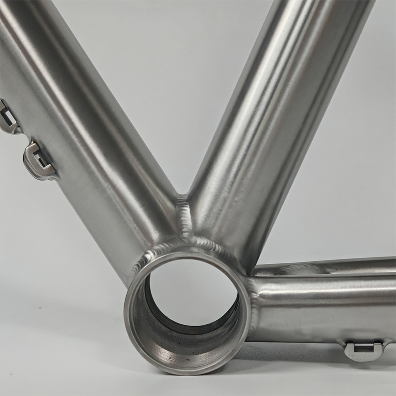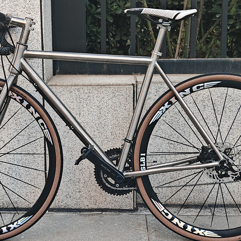 Titanium road bike frame disc brakes To ensure rigidity and strength, the downtube of this titanium road bike frames uses seamless titanium tubing with a diameter of 38mm. In addition, in order to control the weight of the whole bike, the top tube and the center tube use 31.8mm titanium seamless tubes, adapted to 27.2mm bicycle seatpost, and 31.8mm bicycle seatpost clamp.Weight about 1.4-1.5kg. Braking effect: It uses disc brakes for better braking effect, shorter braking distance and more safety. Disc brakes brake by clamping the brake pads, providing more braking power and more suitable for high speed traveling. In contrast, C brakes are not as effective as disc brakes and have a longer braking distance. Geometry: The relaxed geometry combines a shorter front reach with a reasonable stack height, and the frameset are designed to keep the rider in a longer, more comfortable riding position for as long as possible when faced with flat tarmac.If you happen to need to want to modify y…