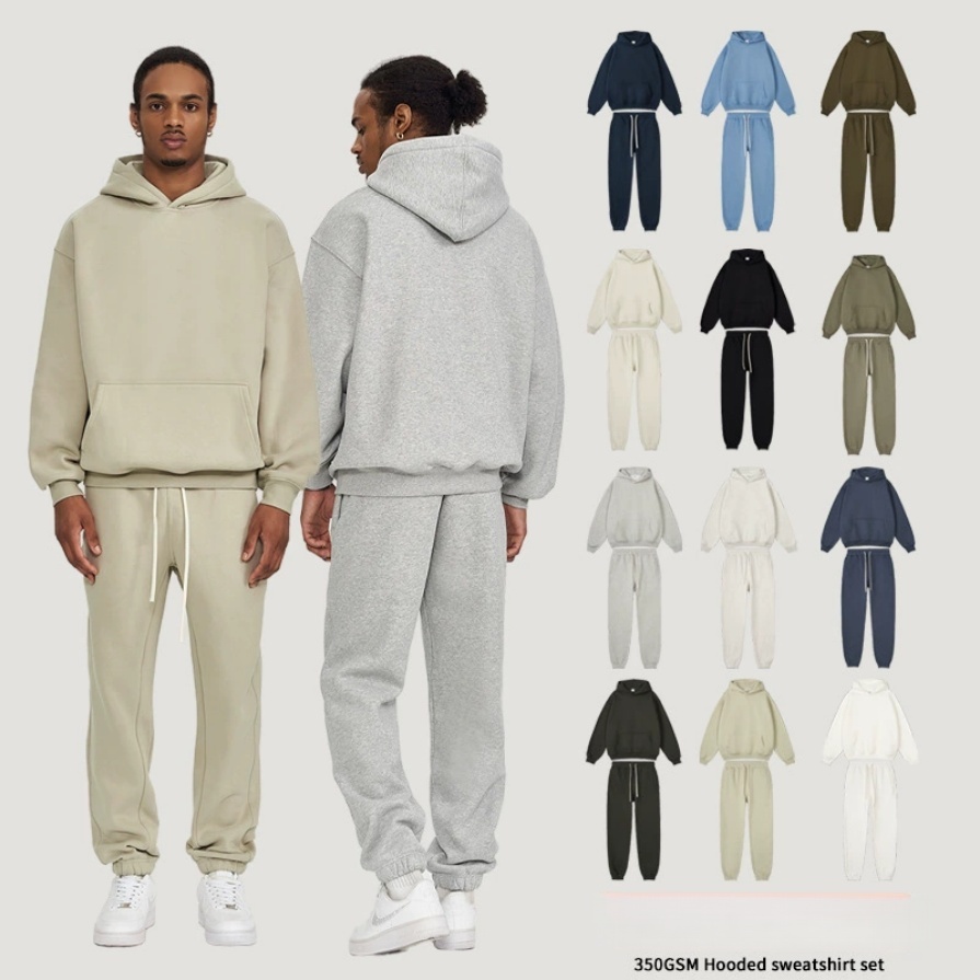 Deeply replicating the fashion essence of the golden age, the retro men's hoodie set features carefully blended vintage washed tones, with a warm timeless filter, easily awakening a nostalgic atmosphere. The version has been optimized through multiple ergonomic adjustments. The slightly loose cut accurately fits most men's body types, which can not only subtly modify the shoulder and neck lines, weaken the bloated feeling of the upper body, but also ensure absolute freedom of daily activities without a sense of restraint. The fabric is selected from high-count combed cotton, treated with pre-washing technology, soft and skin-friendly to the touch, as comfortable as old clothes dried in the sun. It also has excellent breathability and sweat absorption performance, not easy to pill or fade after long-term wear. The hoodie adopts a classic crew neck design, with ribbed reinforcement at the neckline to prevent deformation and curling; the sweatpants are matched with a classic cuffed versio…