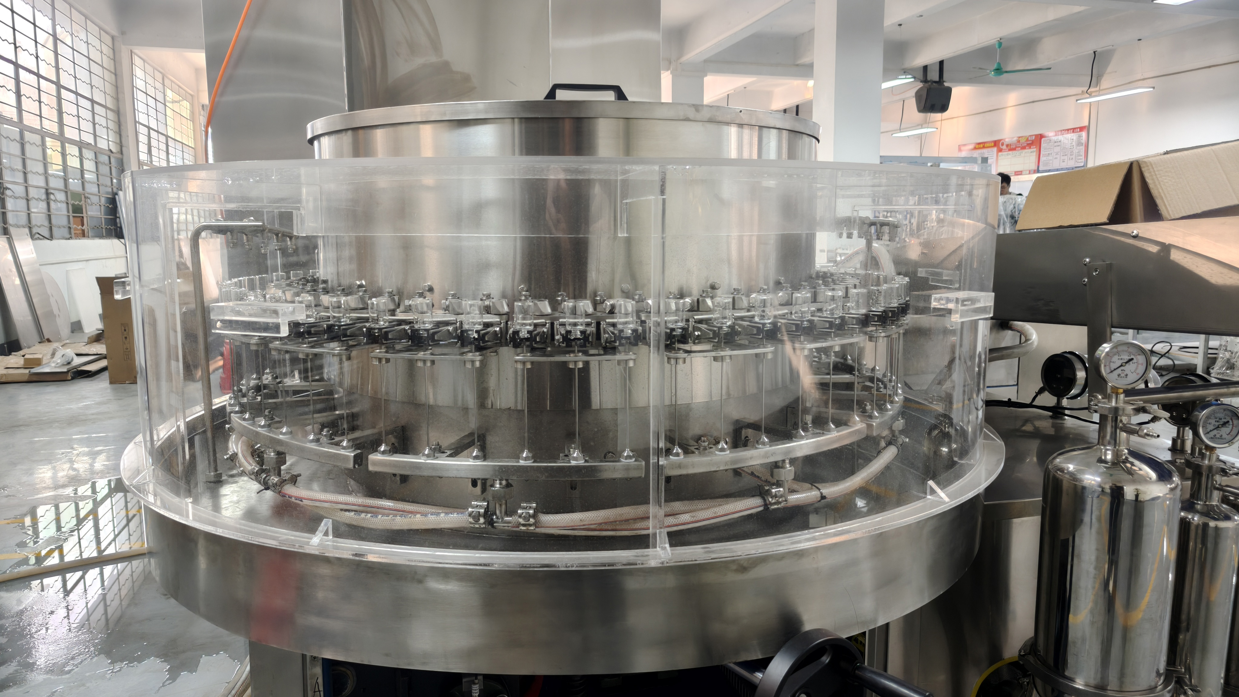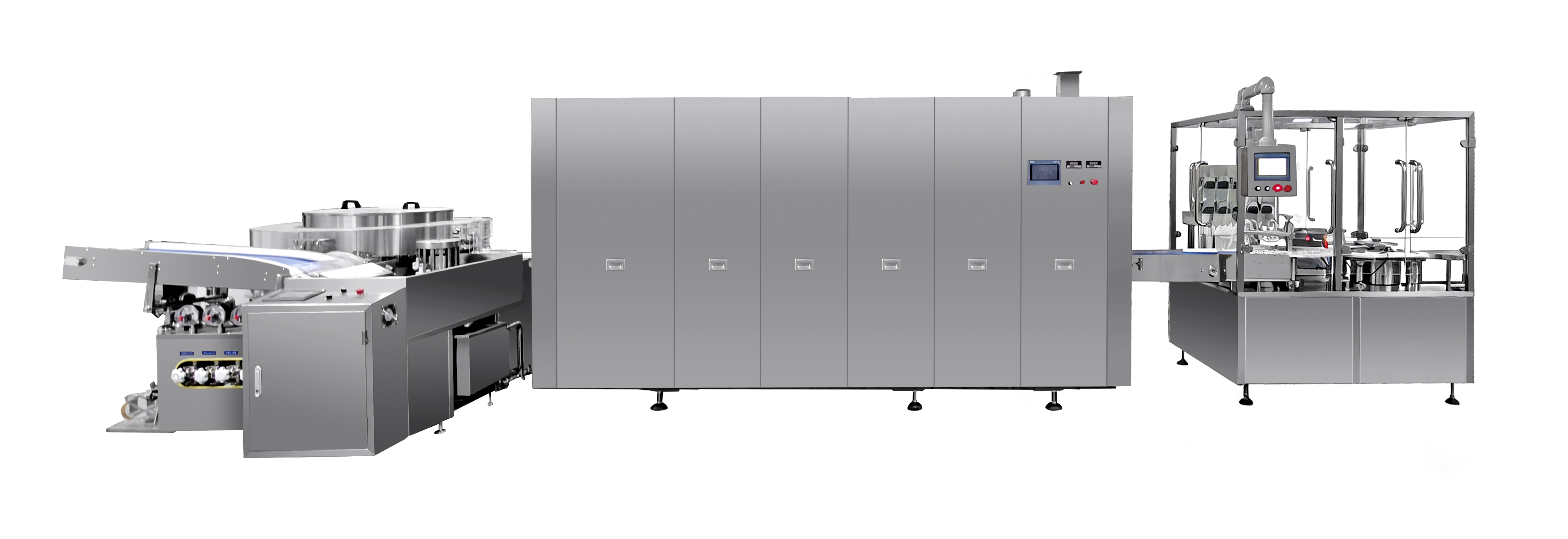 Integrated production line for vial washing, filling and capping: 200 bottles per minute, sterile and highly efficient closed-loop forming Specifically designed for the aseptic production of vials in the pharmaceutical industry, it integrates four core processes: ultrasonic bottle washing machine, high-temperature bottle drying, 10-head filling, and automatic capping vial filling machine. It realizes a fully automated closed loop from "empty bottles entering the line to aseptic finished products leaving". With a stable production capacity of 200 bottles per minute, it meets the demands of large-scale mass production and fully complies with aseptic production standards. It is the core production equipment for products such as injections, biological preparations, and freeze-dried powders. The bottle washing process adopts multi-frequency ultrasonic cleaning technology, combined with high-pressure spray systems on both inner and outer walls. After the vials enter the cleaning station,…