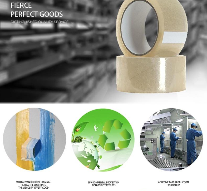 Product Details Bopp Adhesive Tape BOPP sealing tape specifications are expressed by "width × length × thickness", where "width" is the width of the tape, generally expressed in mm or cm, generally ≥ 10mm. Common specifications are 60mm, 48mm, 45mm, 40mm, 30mm and so on. Its performance is good, suitable for the storage of goods in the warehouse, the shipment of containers, etc. The main advantage Thin thickness, good performance and price ratio, transparent appearance, double-sided adhesive, non-toxic, odorless, good safety, easy to use, high efficiency, high anti-buffering strength, good retraction, anti-piercing, good tear resistance. QC Our company has passed ISO 9001:2008 certification, and the products have passed UL, SGS, RoHS certification and related certification and testing. So far, our customers are located in more than 40 countries, including SIEMENS (Germany) / Philips (Netherlands) / Eral Group (Italy) / KONKA (…