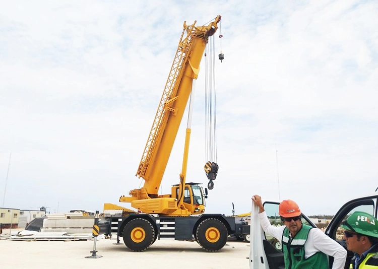Basic lnfo. Product Description 1. terrain Crane:The total rated loads given in the rated load charts are the maximum lifting capacity when the crane is set up on firm and level ground, which includes the weight of the hook block and slings. The weight of above-mentioned devices should be deducted from the rated lifting load.2. Terrain Crane:The working radius shown in the rated load charts is the radius when the load is lifted off the ground, and it is the actual value including loaded boom deflection. Take boom deflection into consideration before beginning a lifting operation.3. Rough Terrain Crane : A lifting operation is permissible only when the wind force is below grade 5 (instantaneous wind speed is 14.1 m/s, wind pressure is 125 N/m2).4. Before beginning lifting operation, the operator should know the weight of the load to be lifted and its working range, and then select proper working conditions. Never operate the crane beyond the limit shown in the chart. Use the lower valu…
